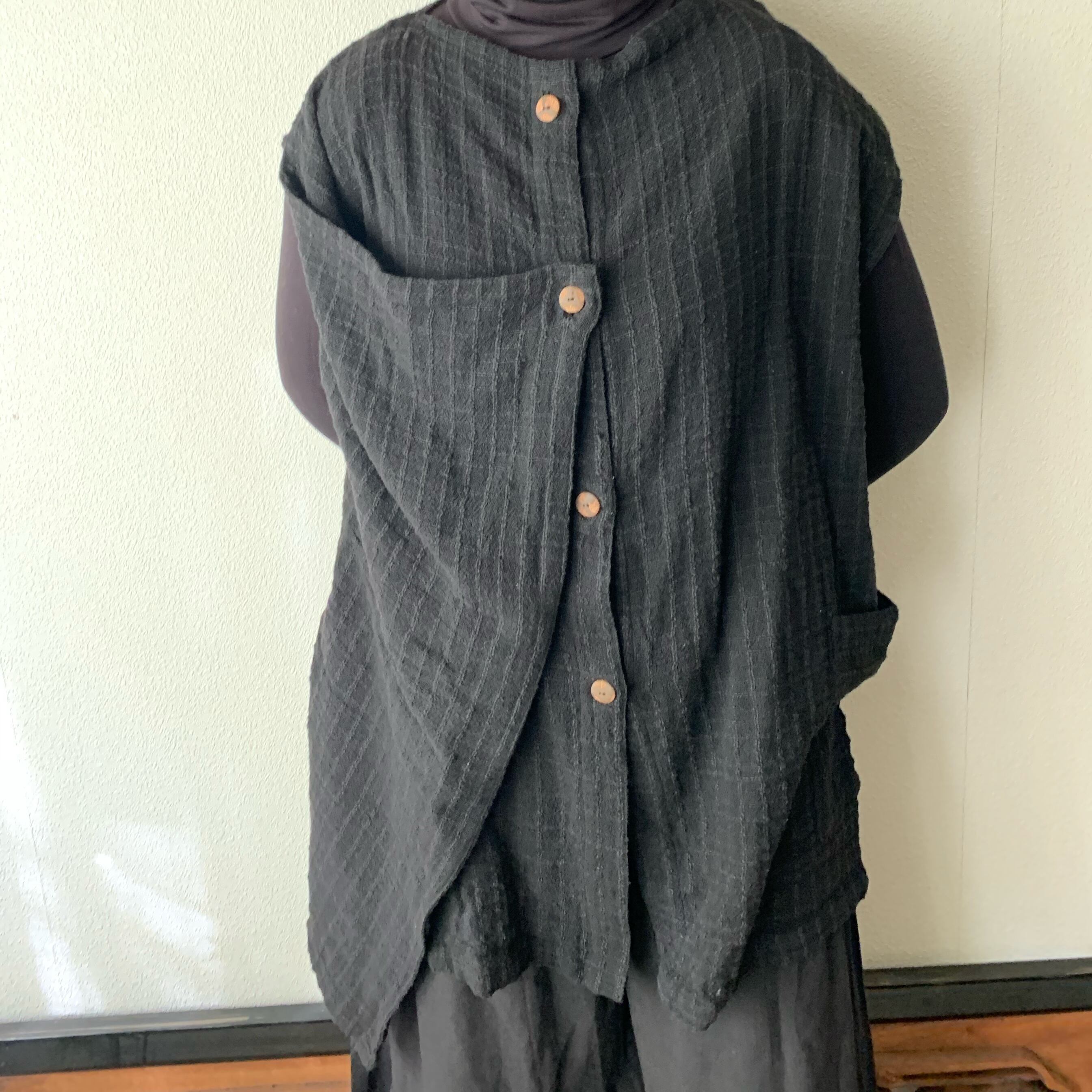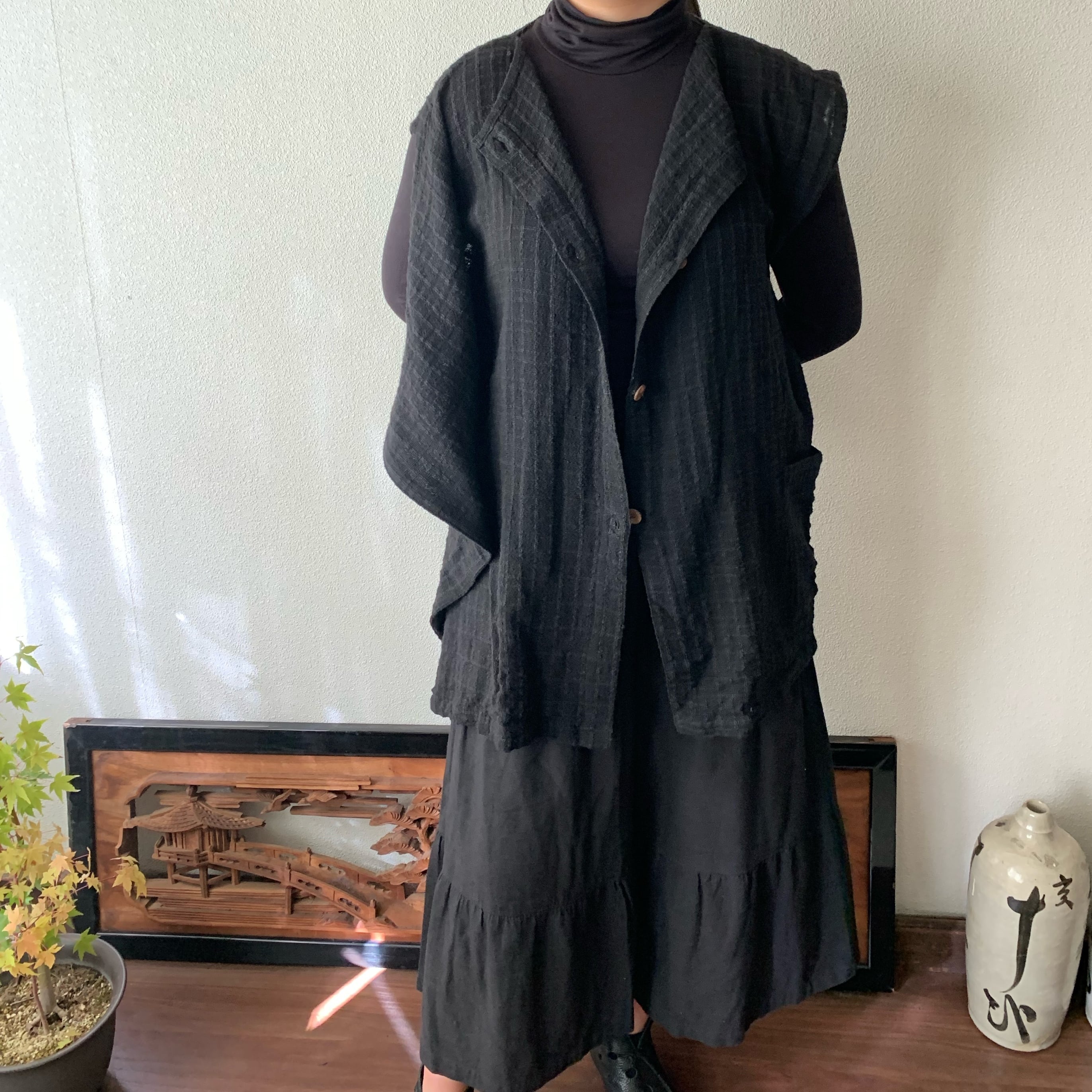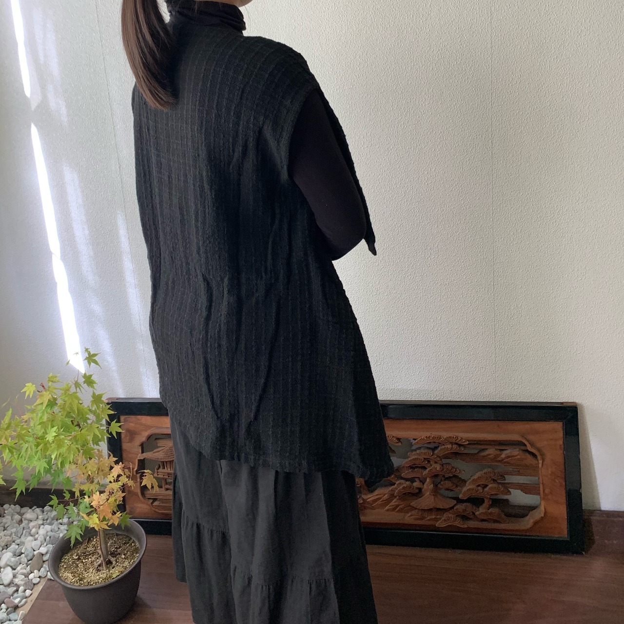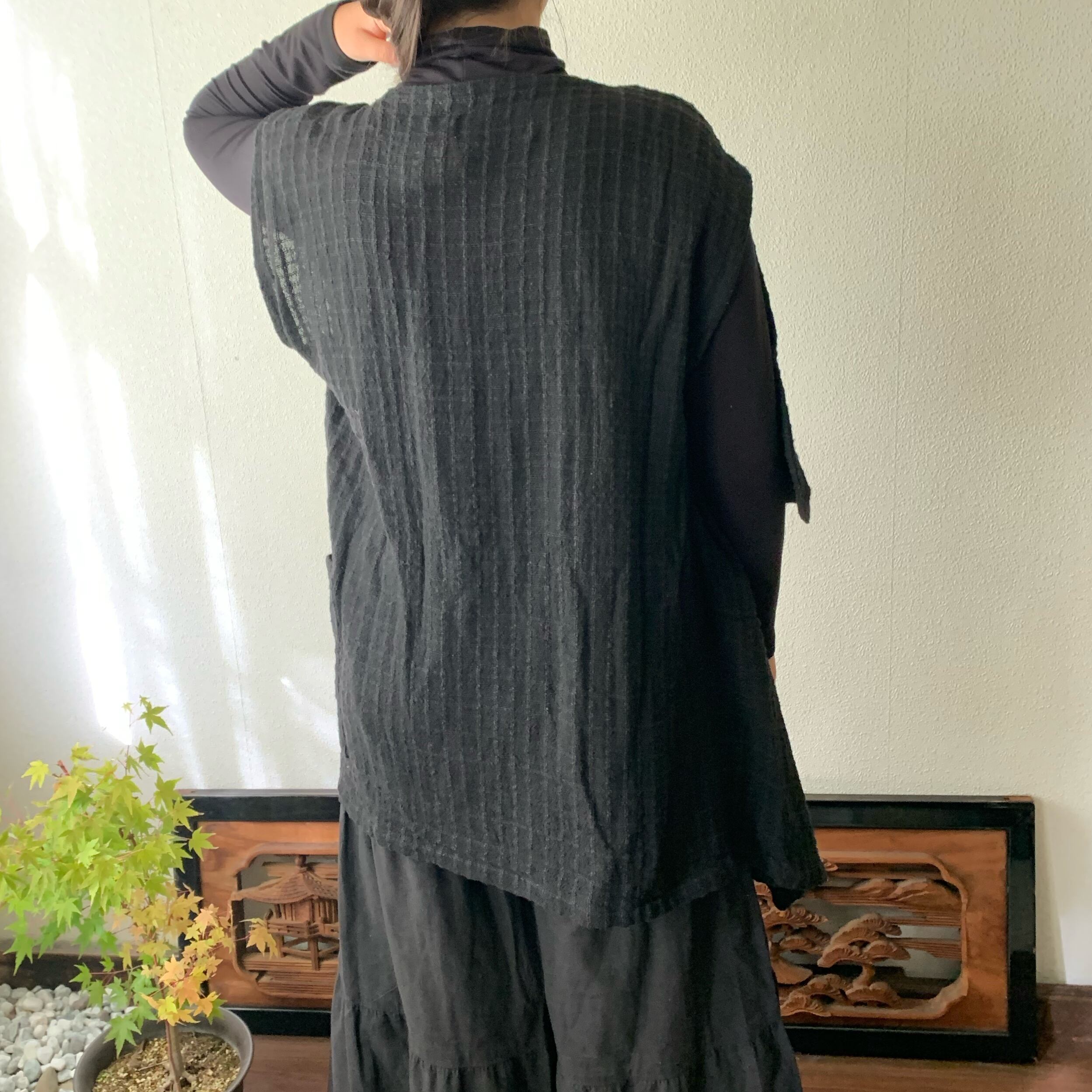 『楽に羽織れるのに何通りも着こなせる手織り綿アシンメトリーベスト 少しずつの変化で周りの人に声かけられる?』