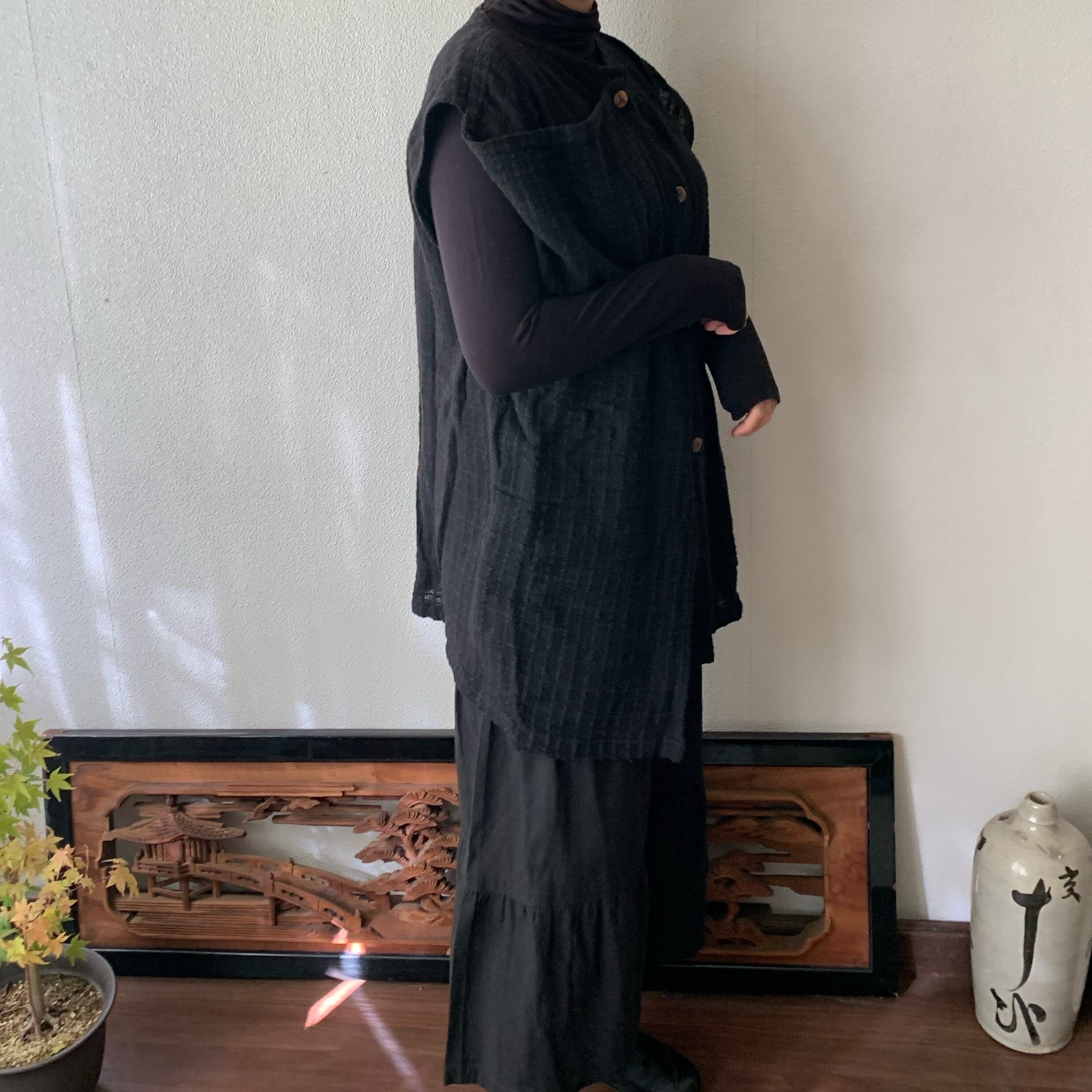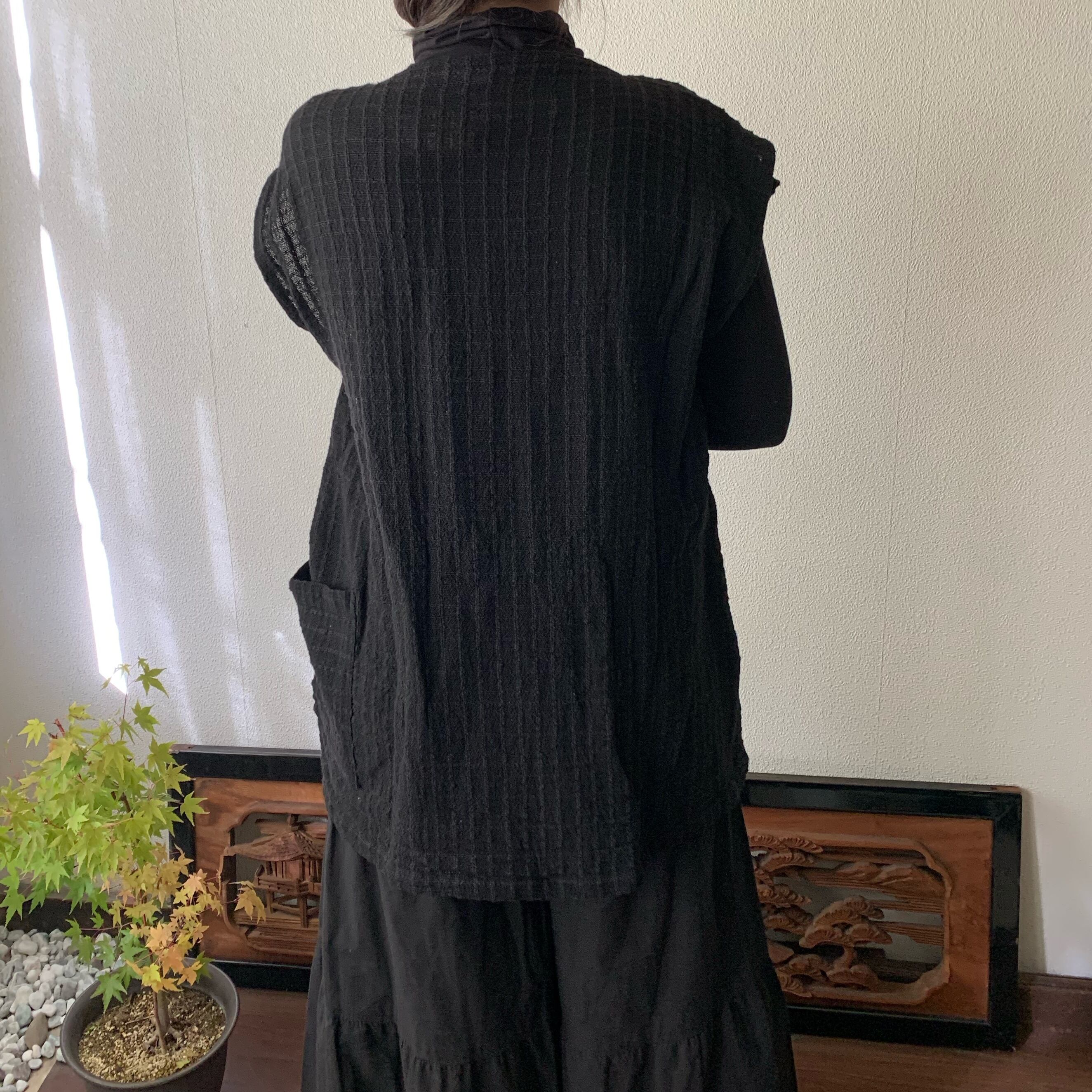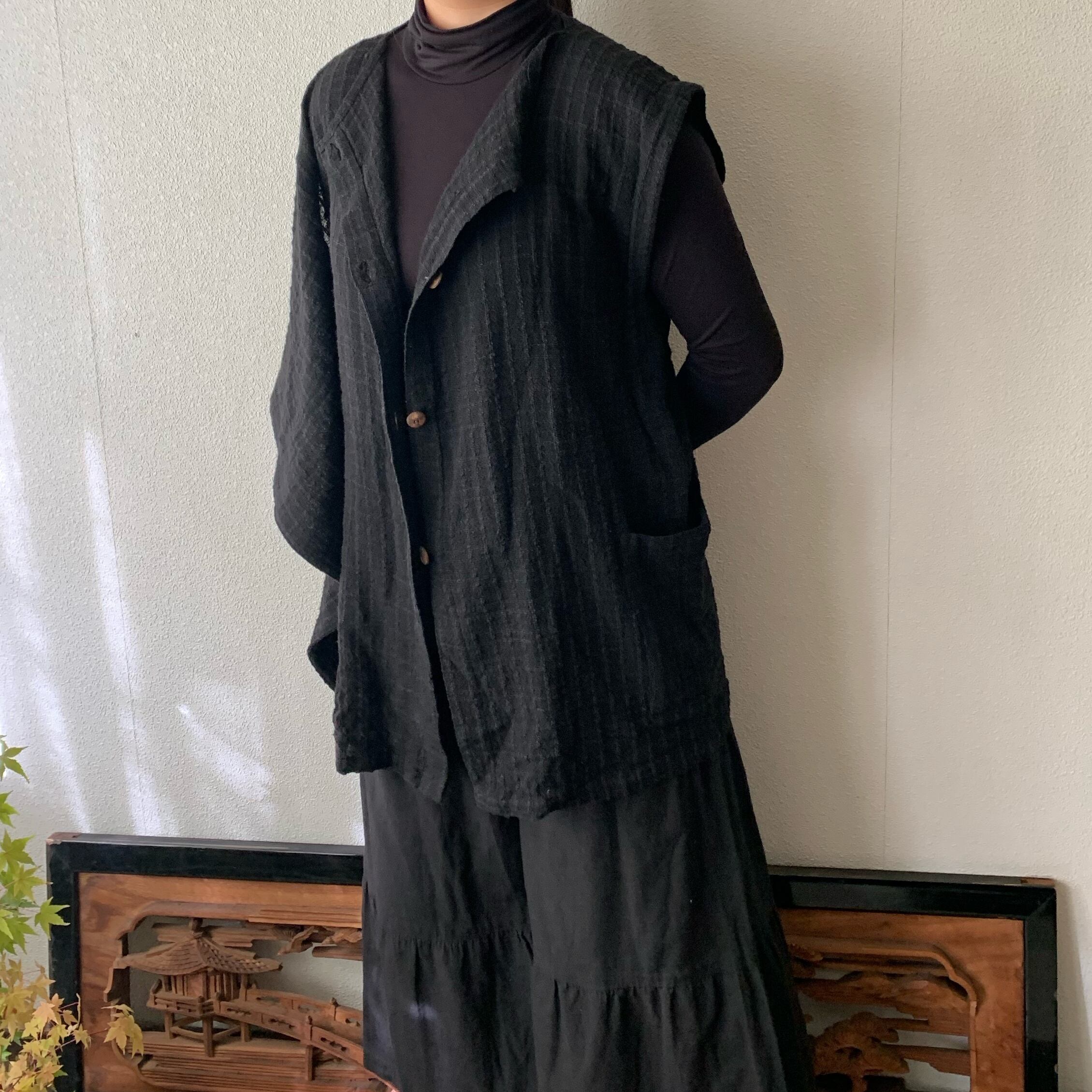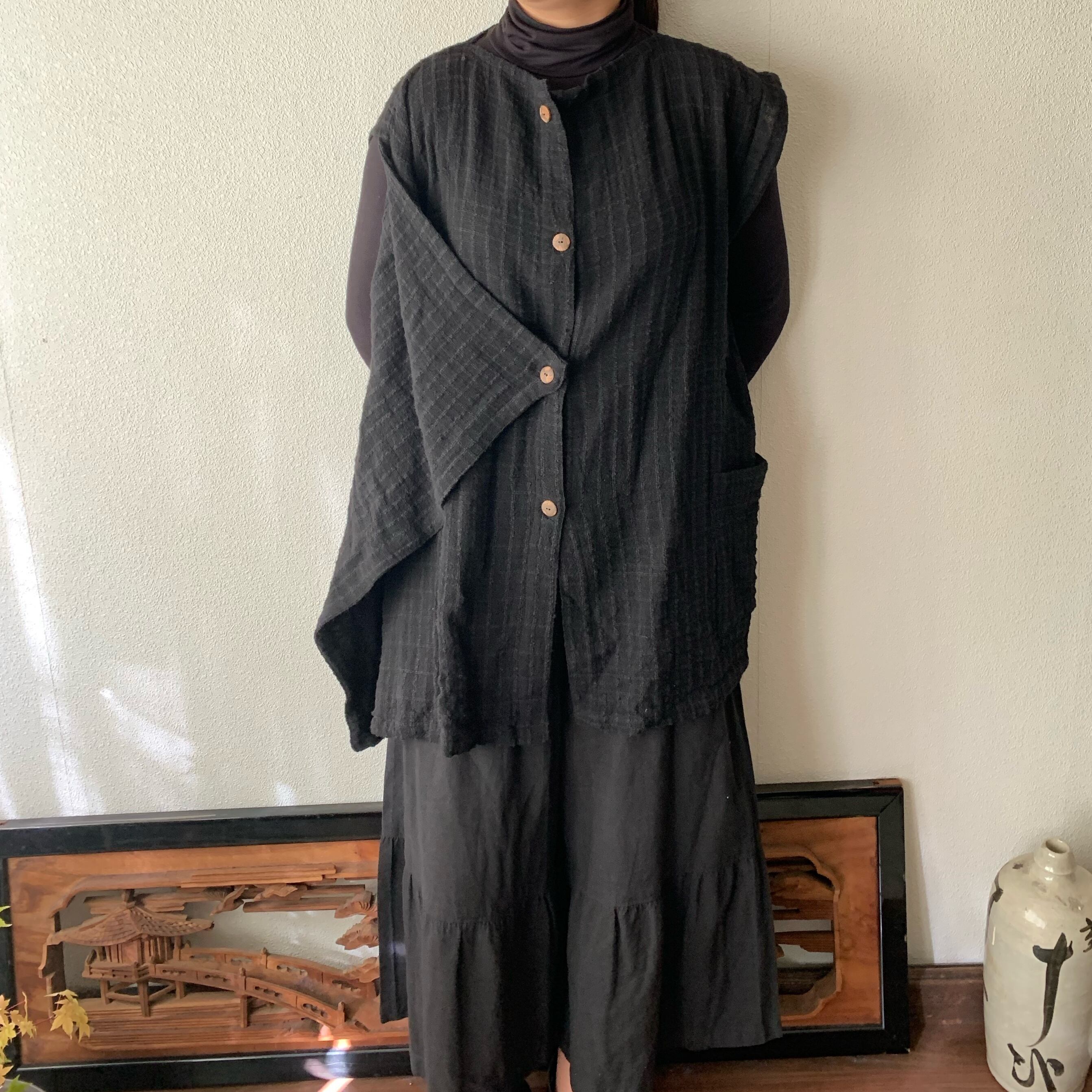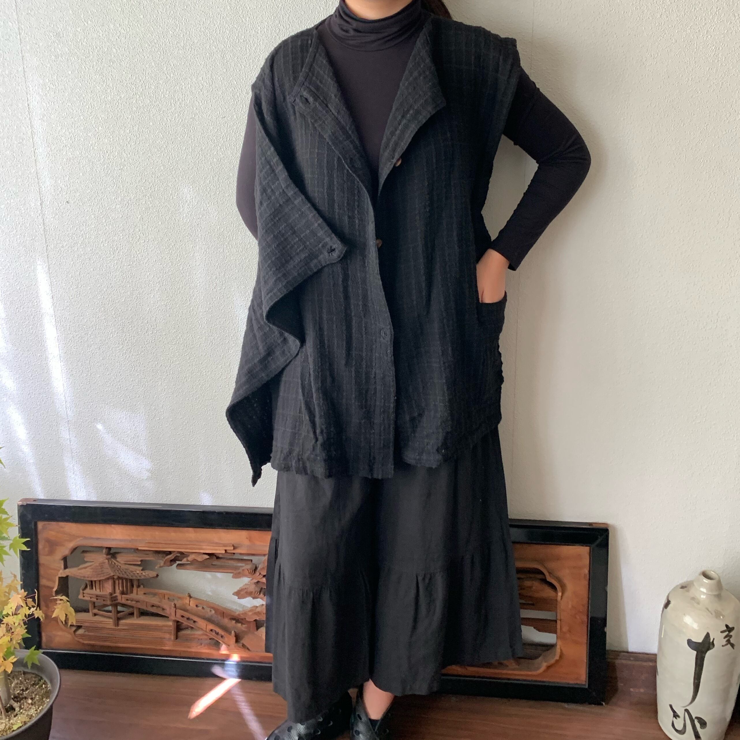 『楽に羽織れるのに何通りも着こなせる手織り綿アシンメトリーベスト 少しずつの変化で周りの人に声かけられる?』