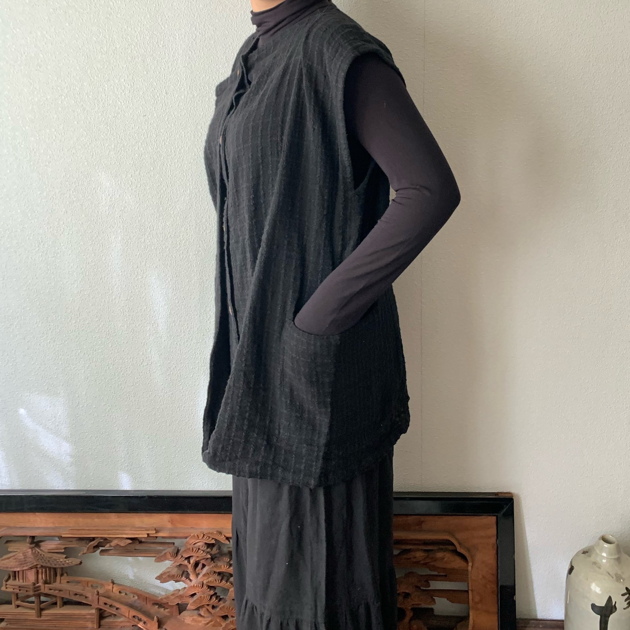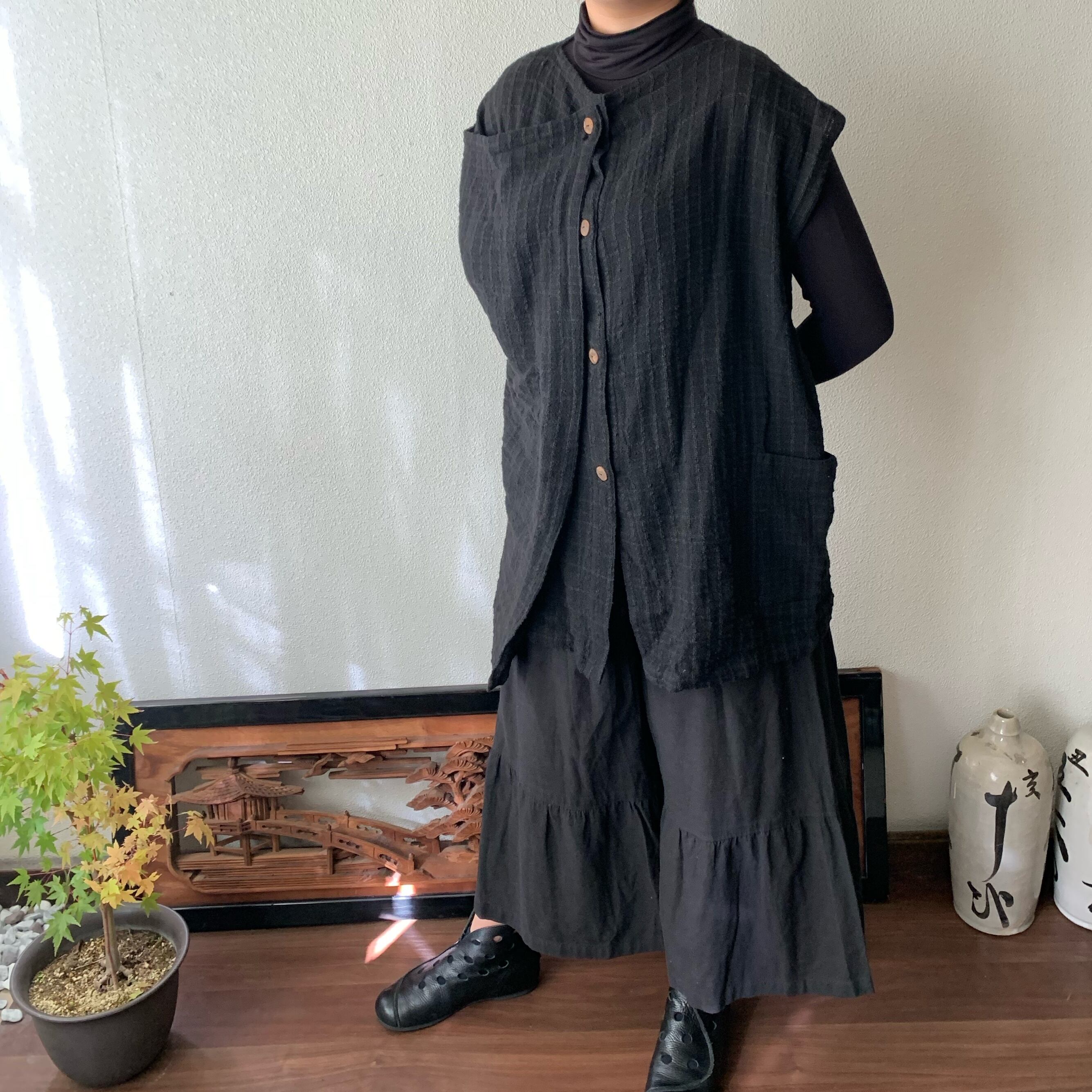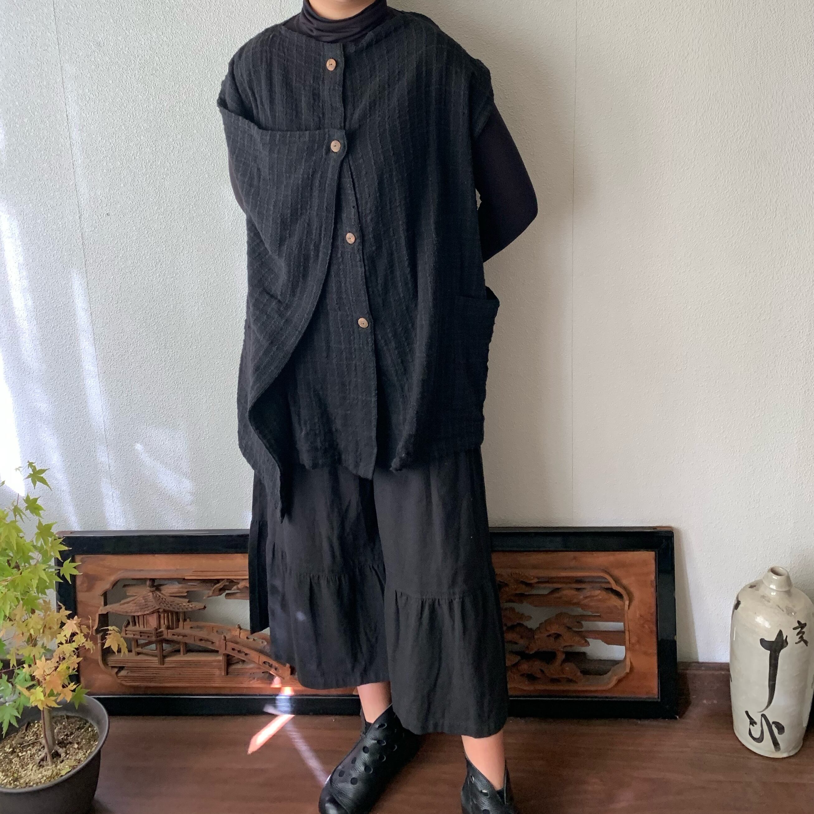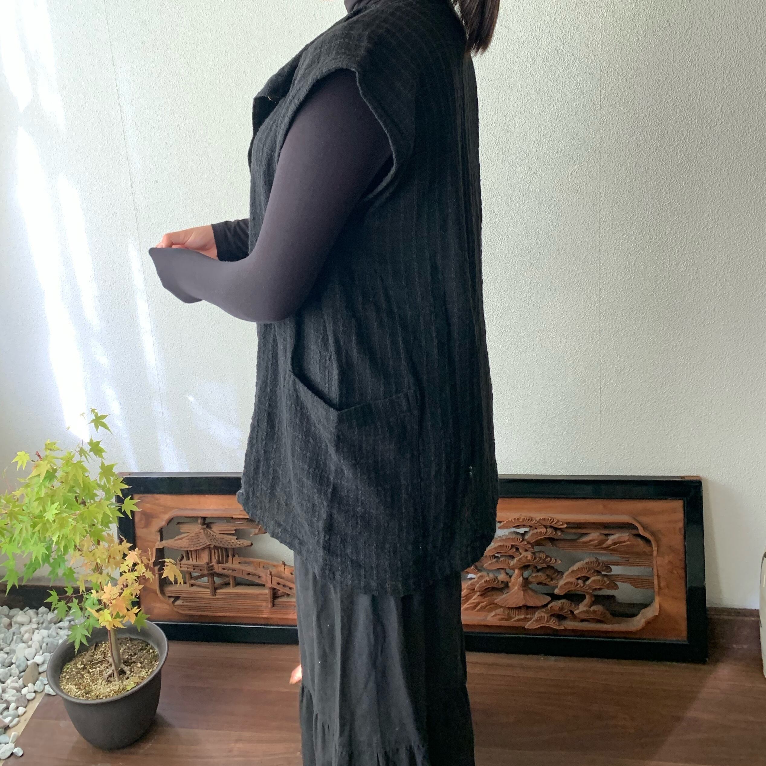 『楽に羽織れるのに何通りも着こなせる手織り綿アシンメトリーベスト 少しずつの変化で周りの人に声かけられる?』
