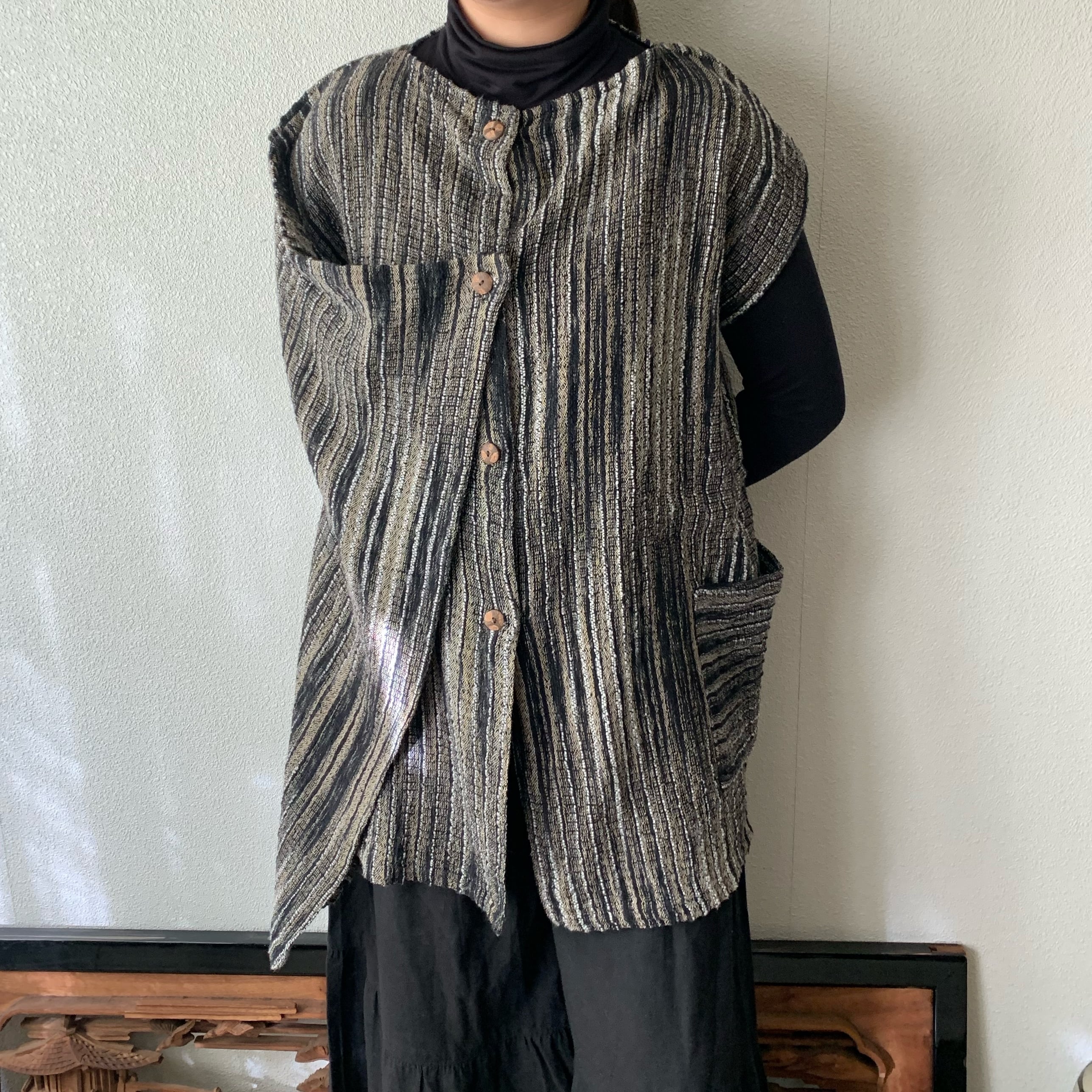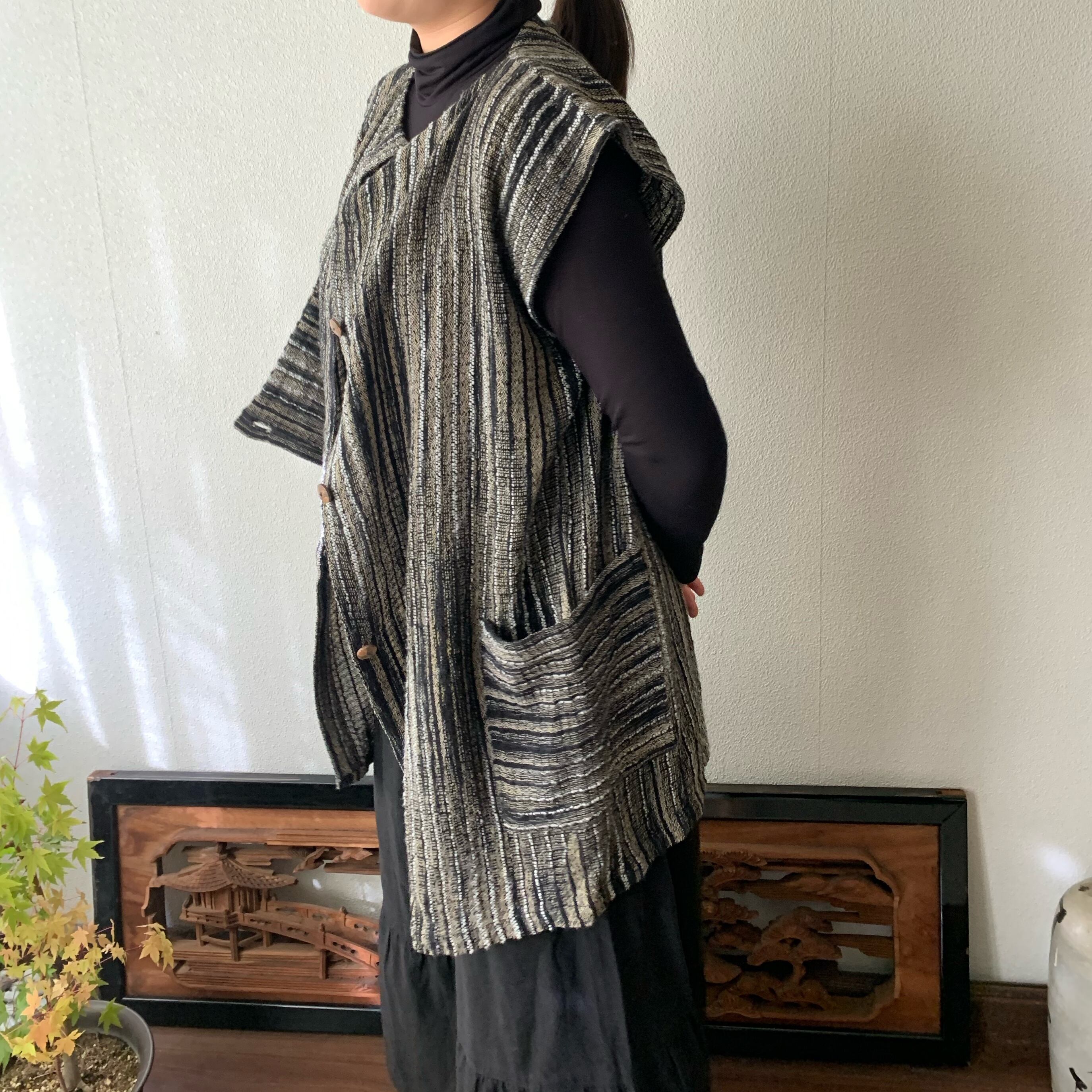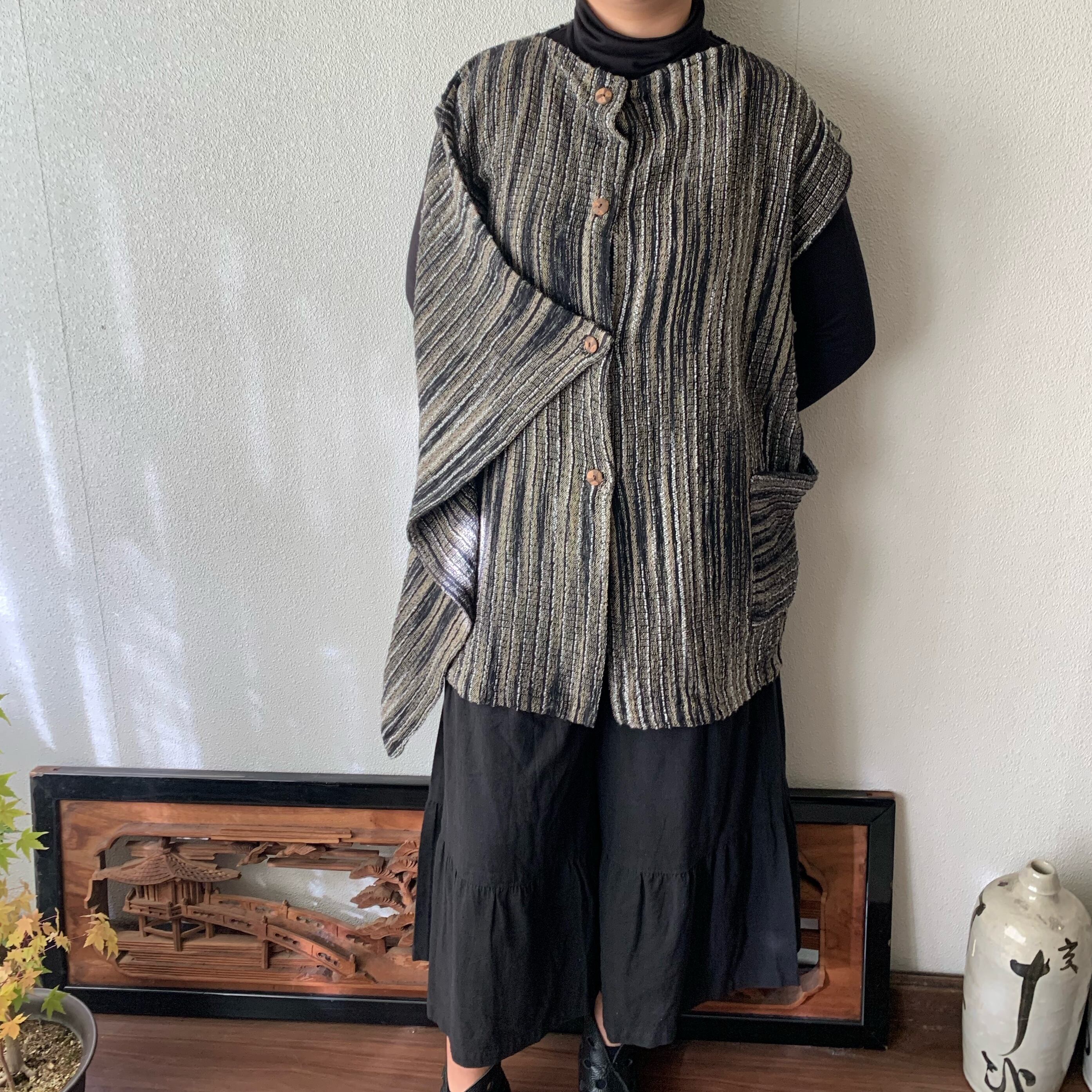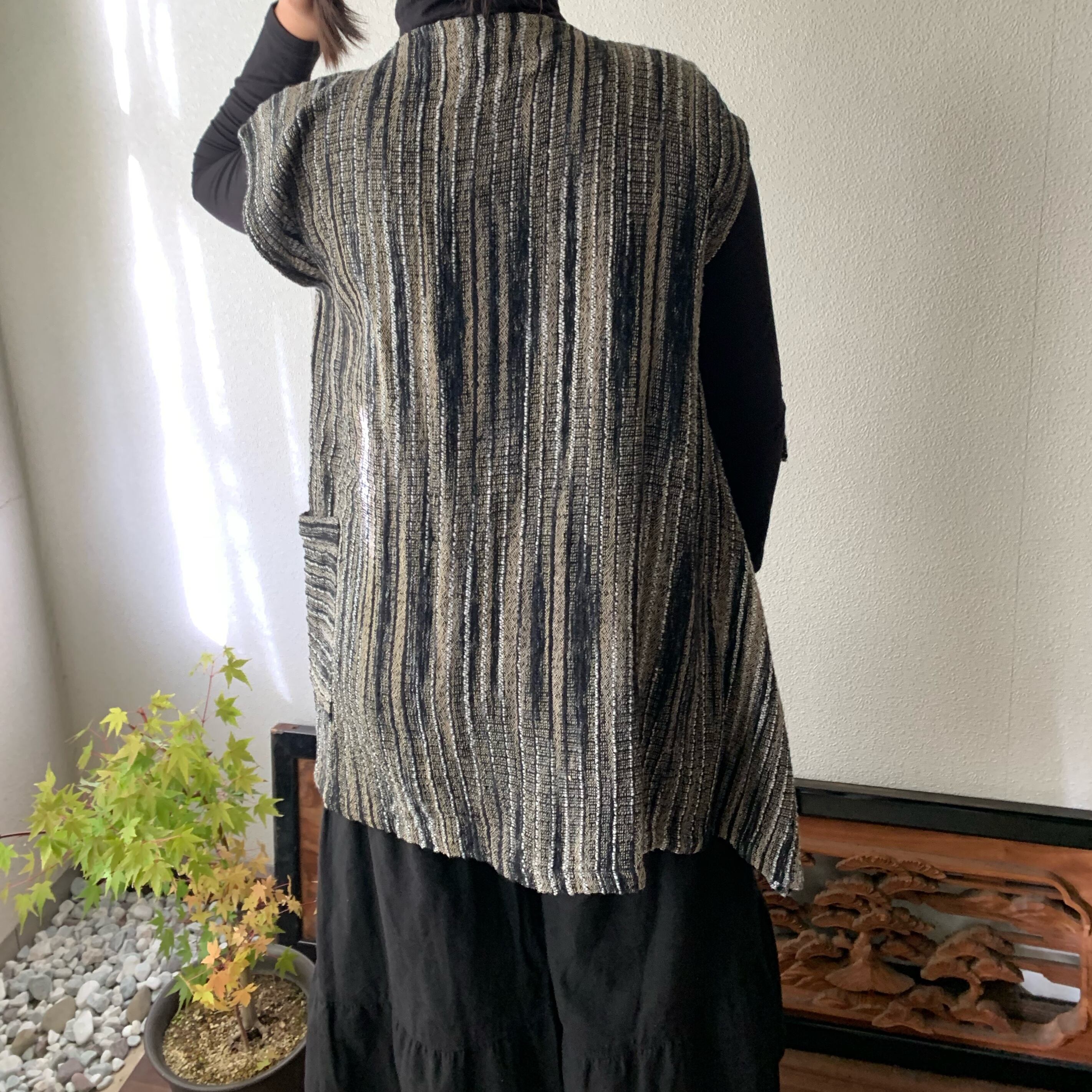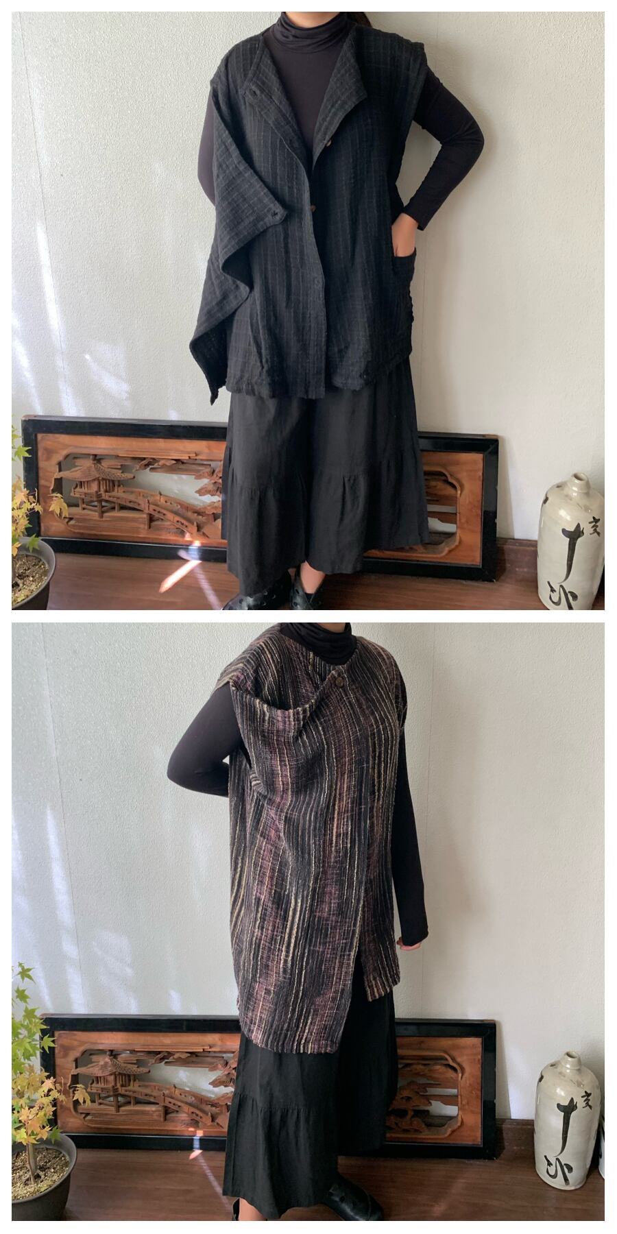 『楽に羽織れるのに何通りも着こなせる手織り綿アシンメトリーベスト 少しずつの変化で周りの人に声かけられる?』