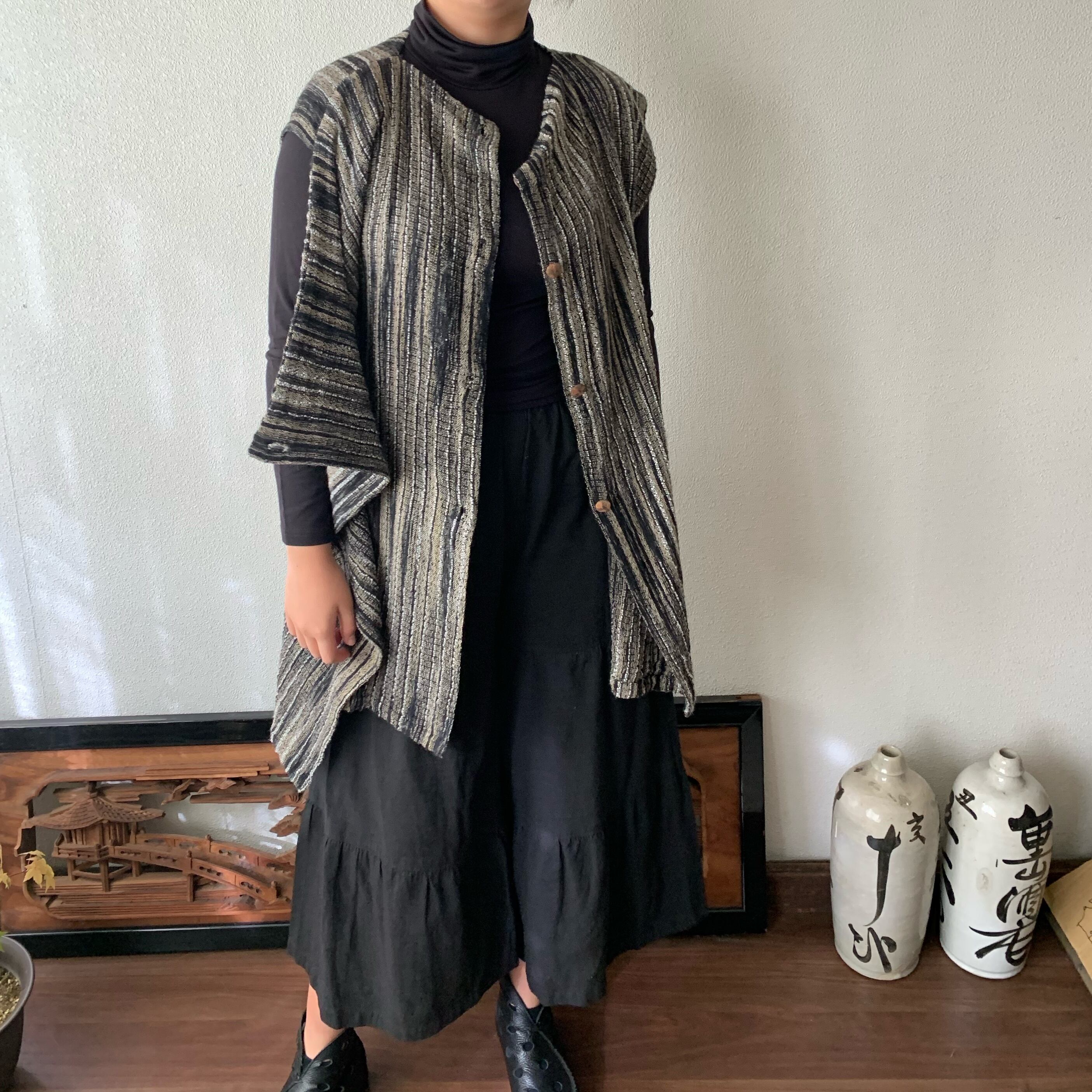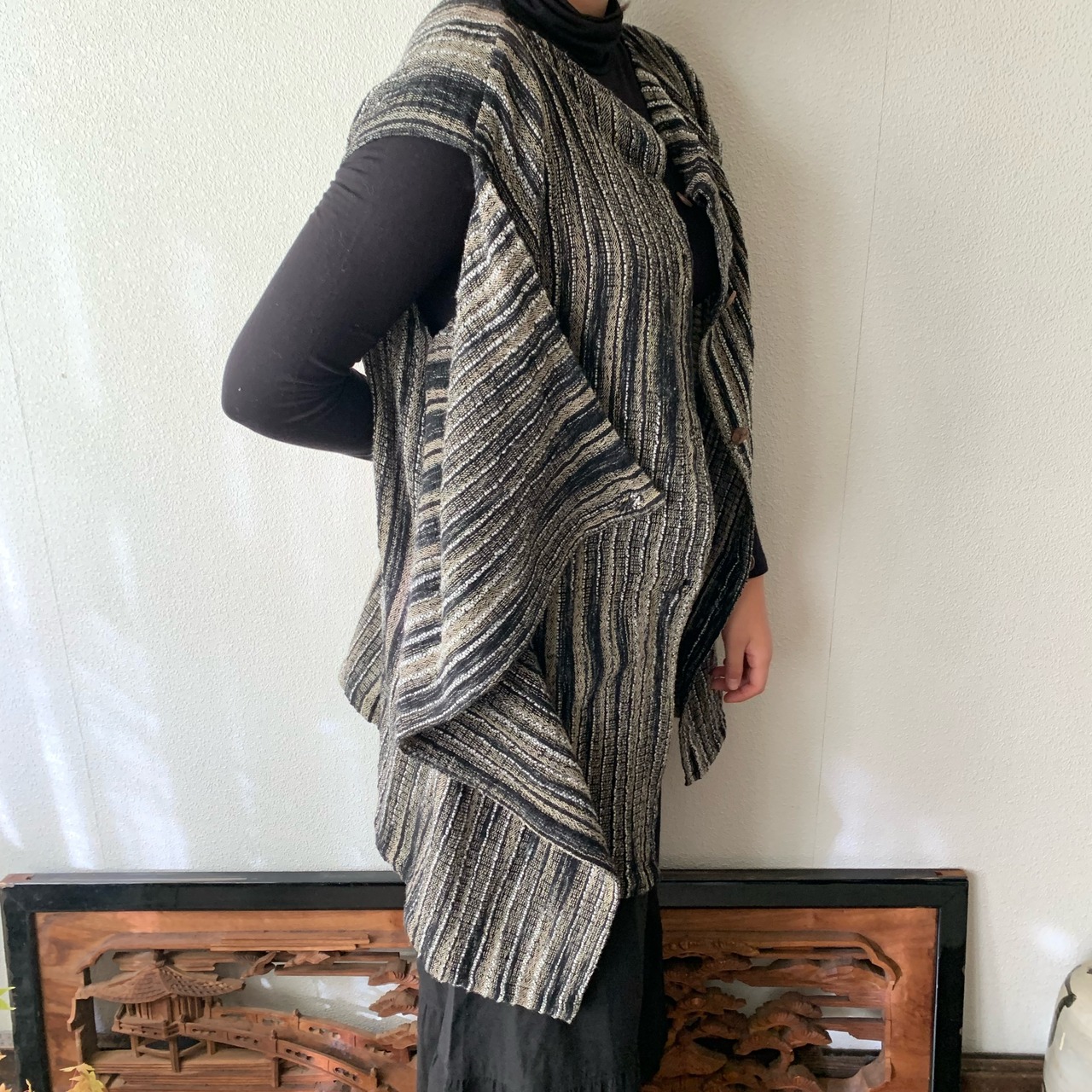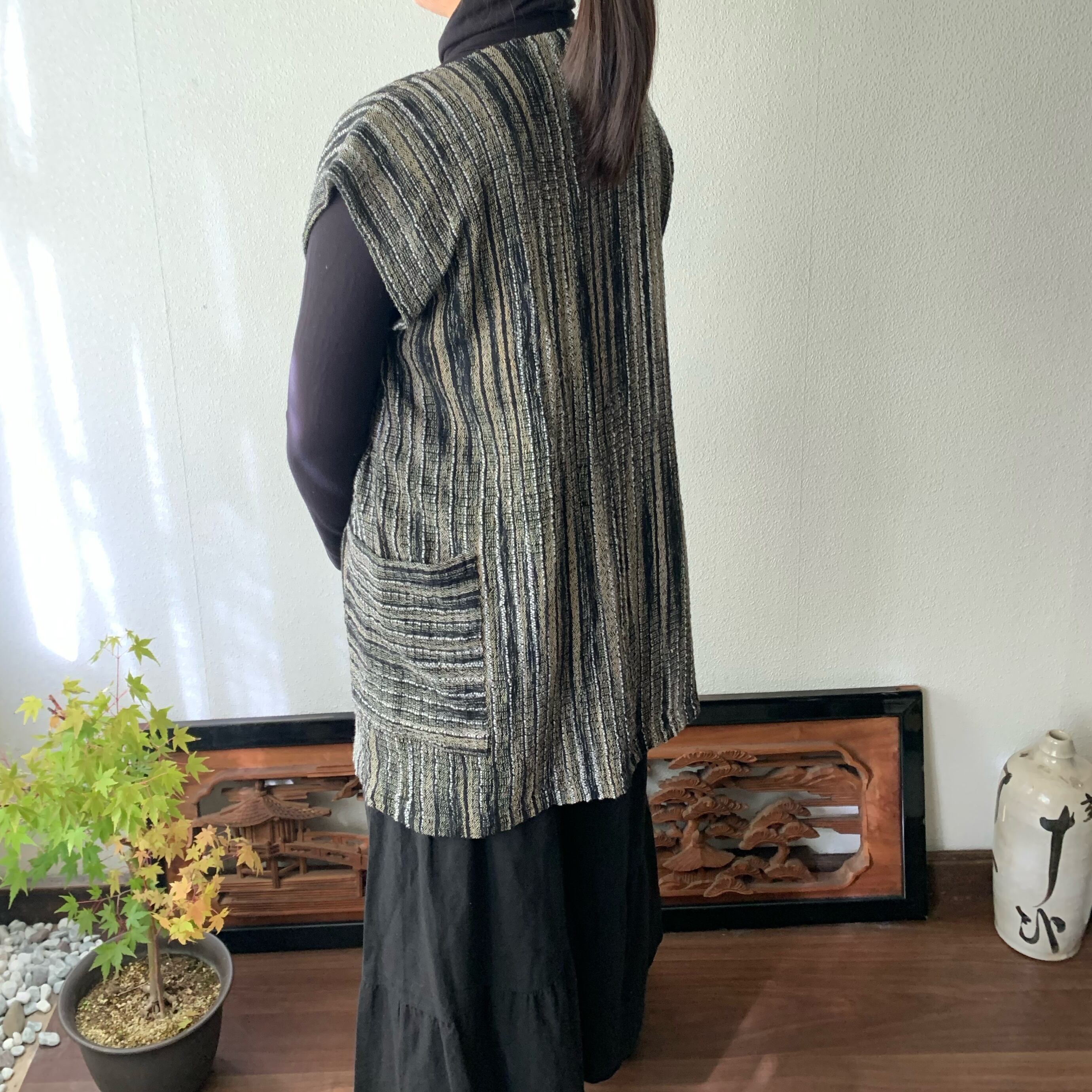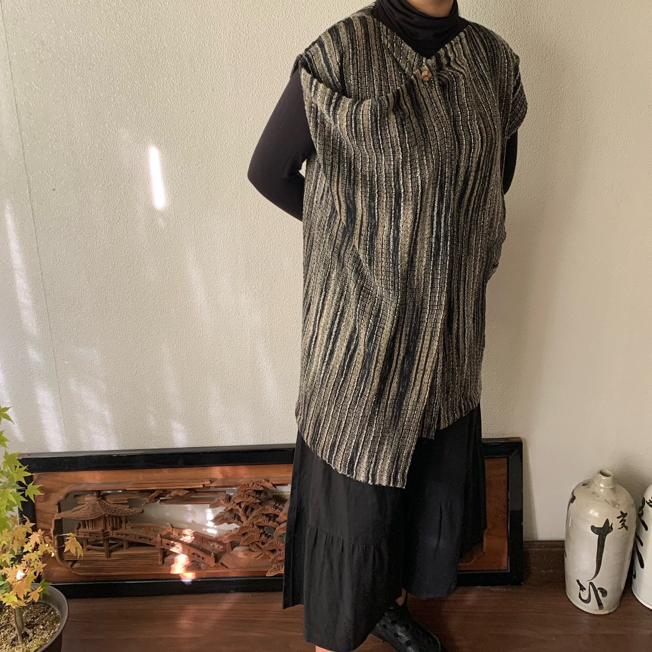 『楽に羽織れるのに何通りも着こなせる手織り綿アシンメトリーベスト 少しずつの変化で周りの人に声かけられる?』