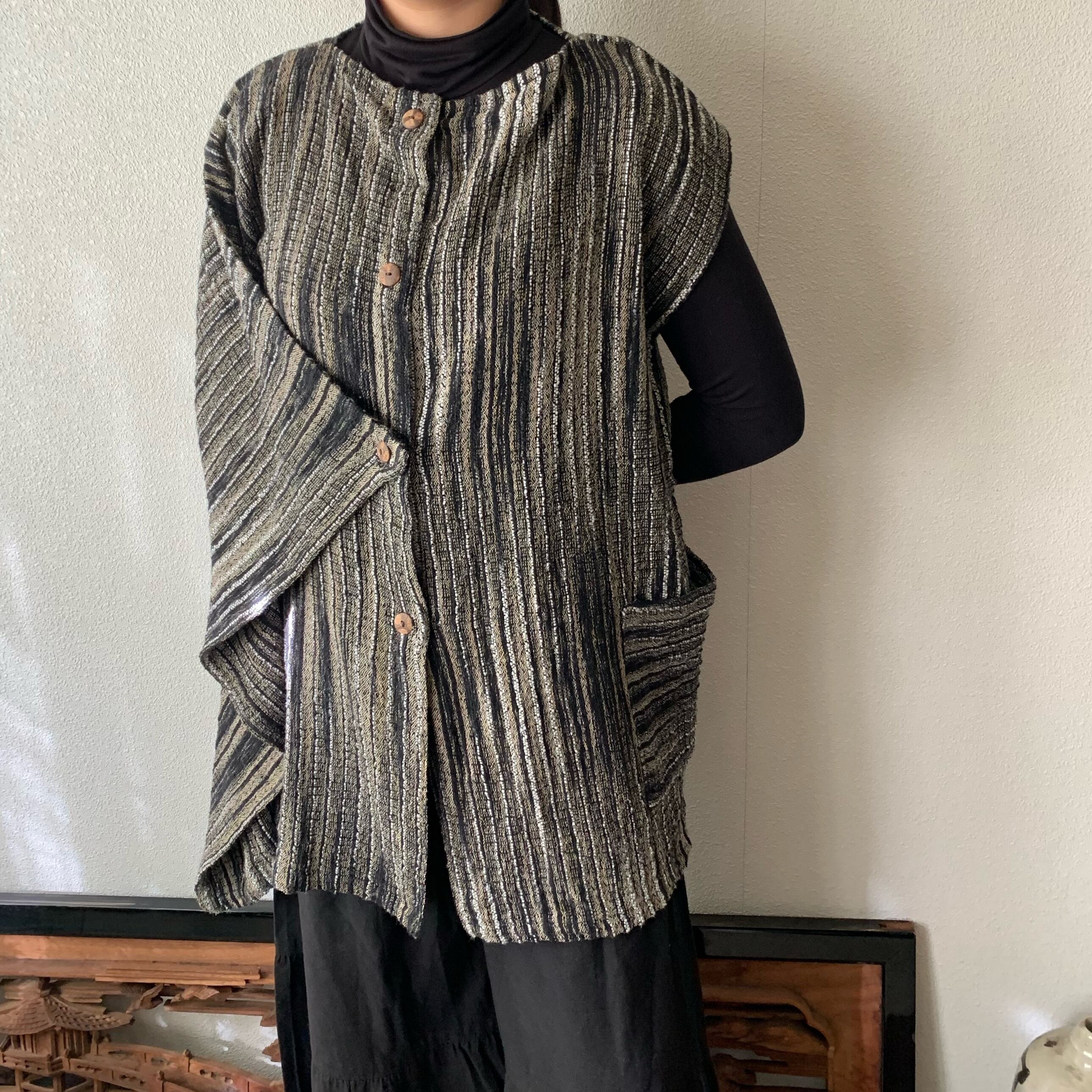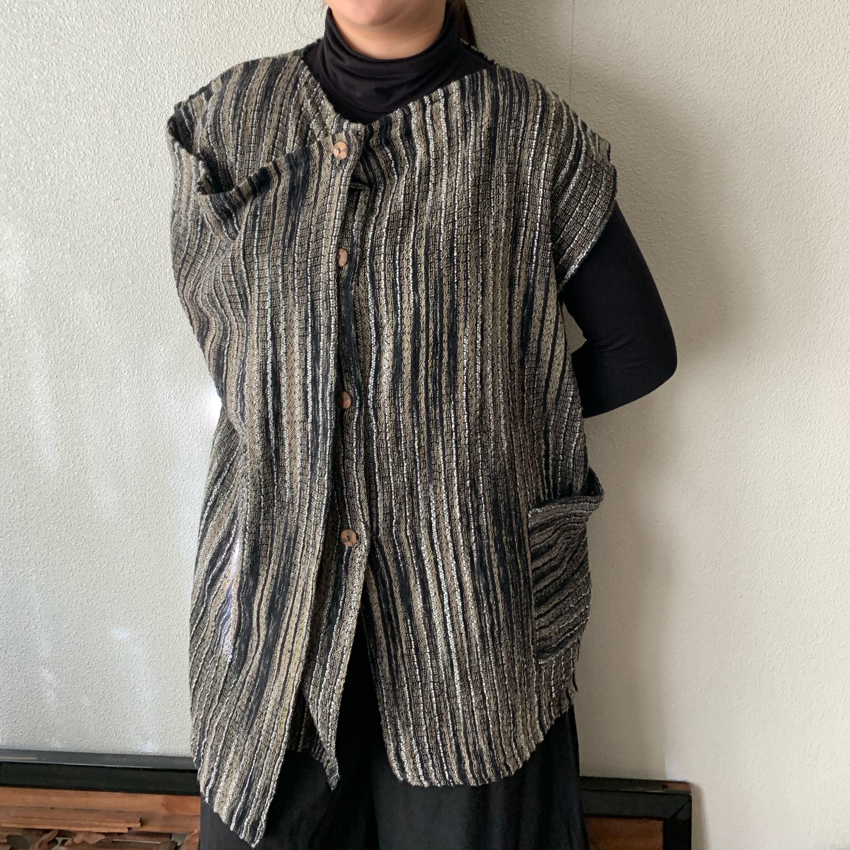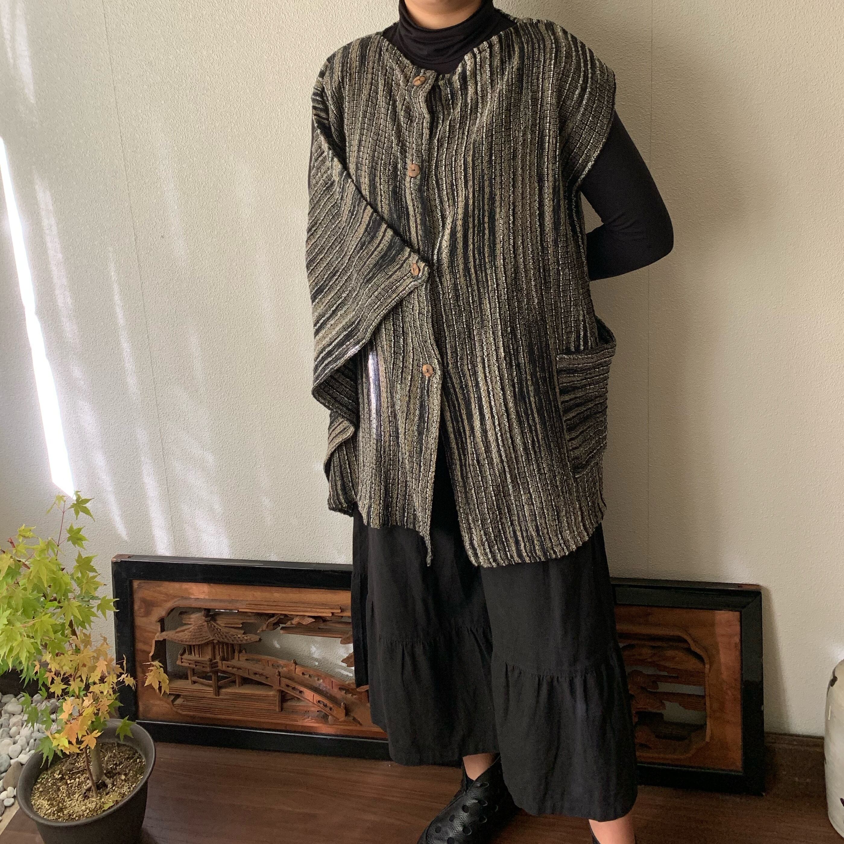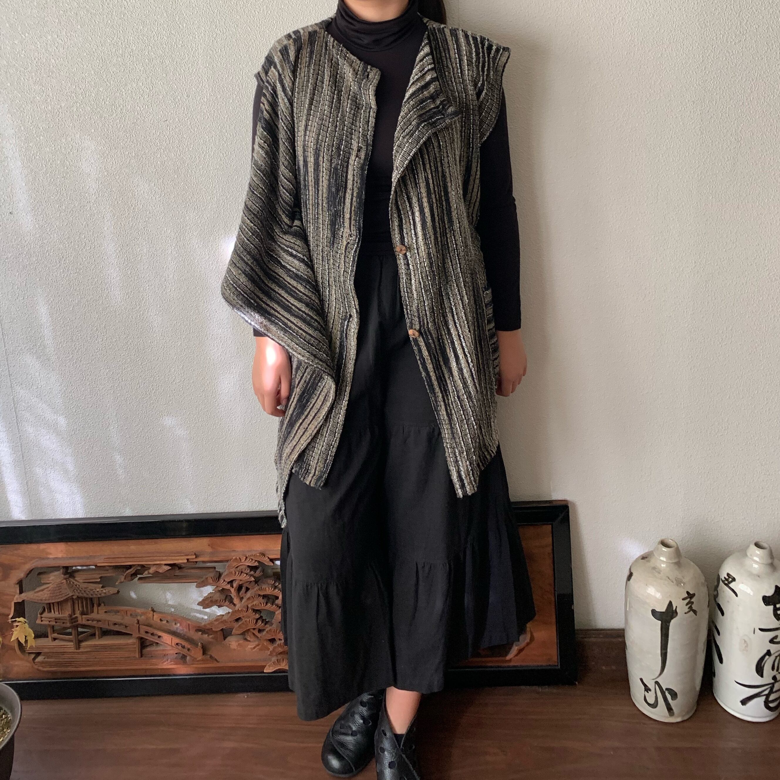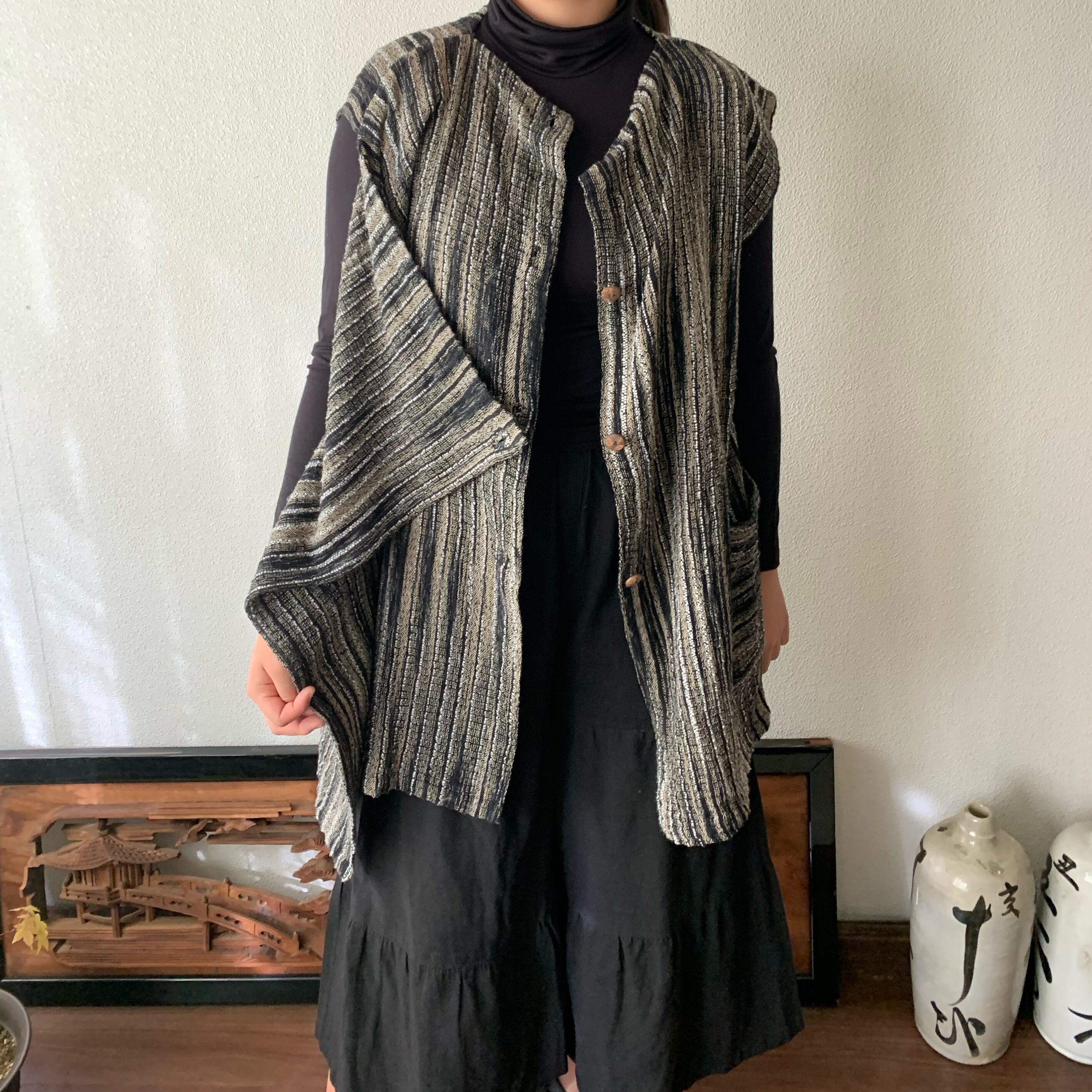『楽に羽織れるのに何通りも着こなせる手織り綿アシンメトリーベスト 少しずつの変化で周りの人に声かけられる?』