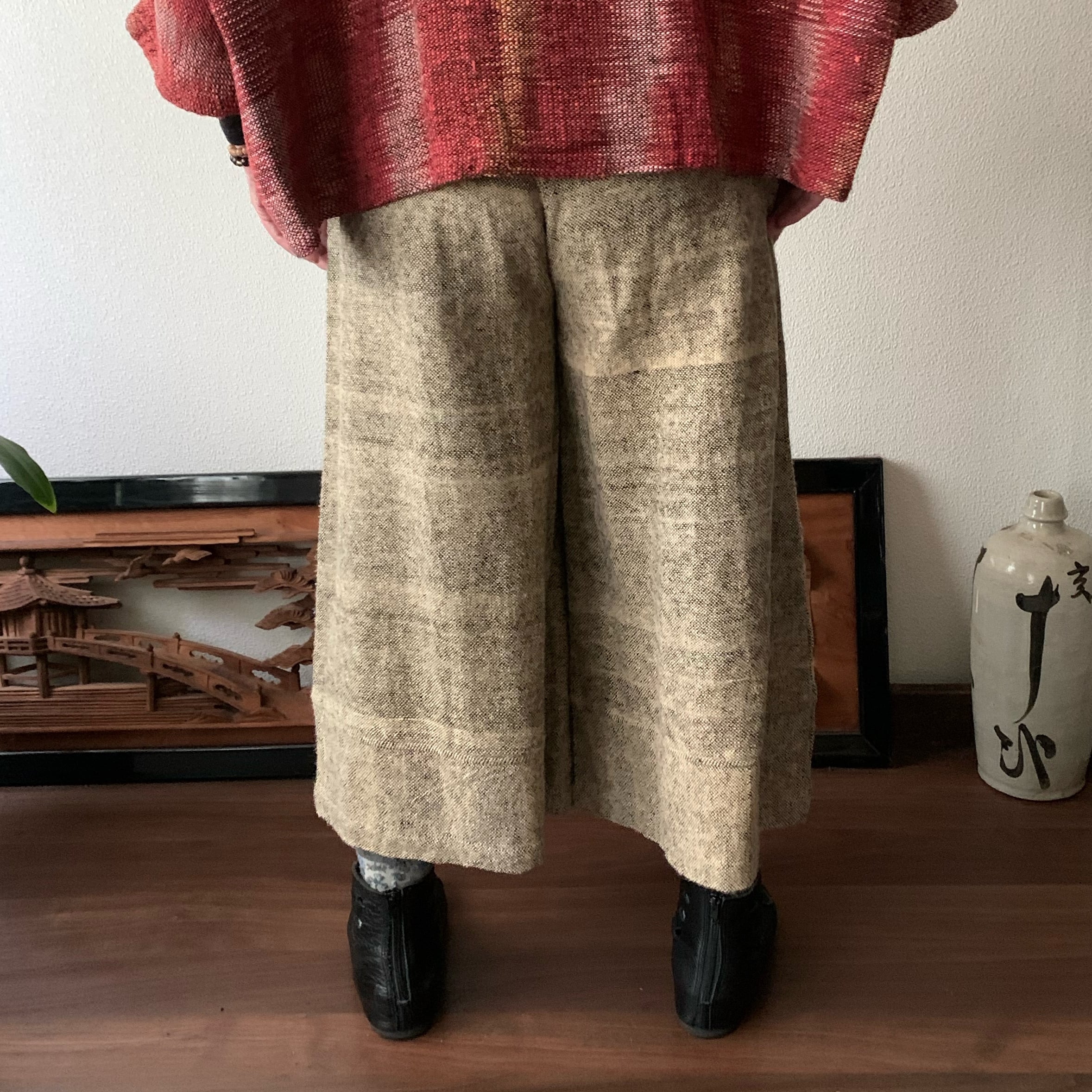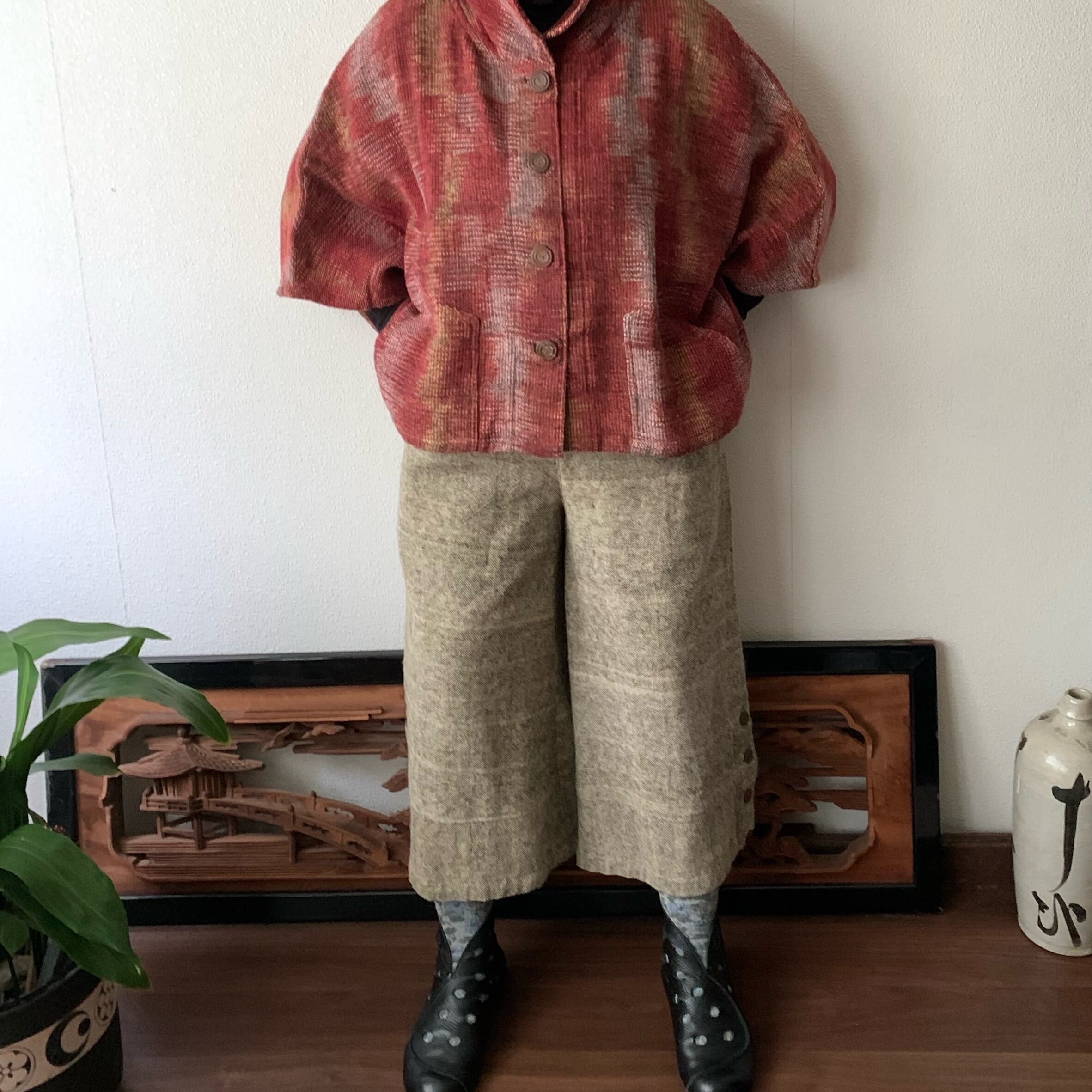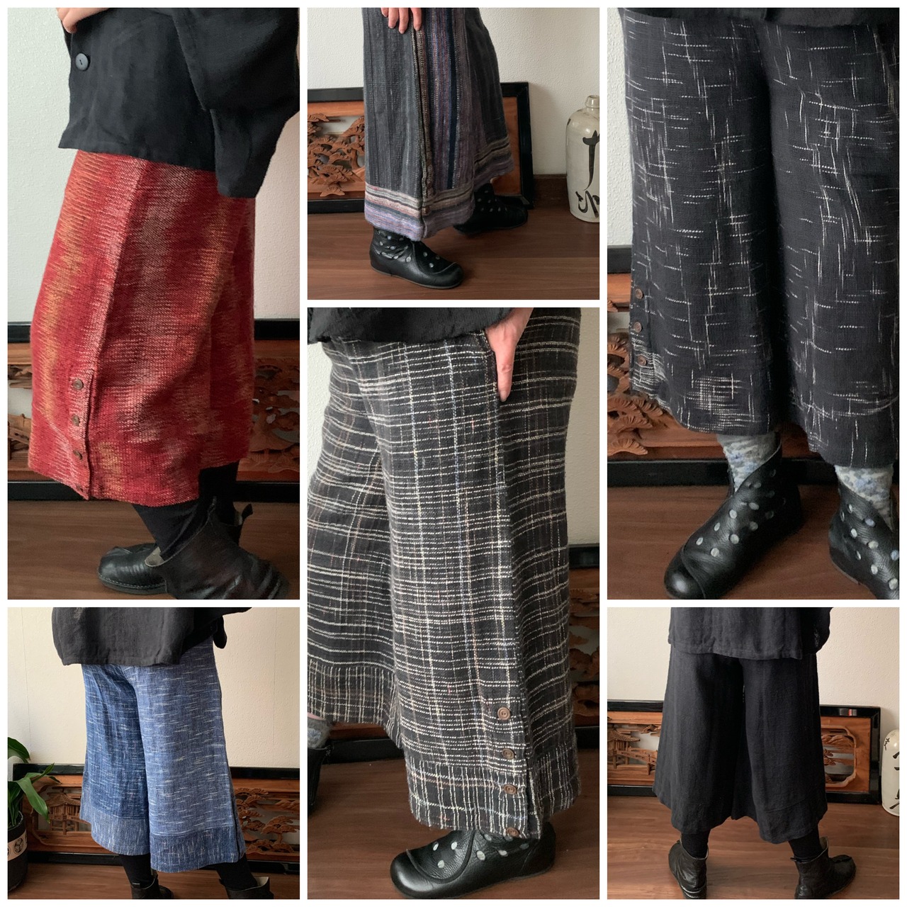 手織り綿なので、夏にサンダルと合わせても良し、秋冬にレギンスの上にはきブーツを合わせてもかっこいいです。
