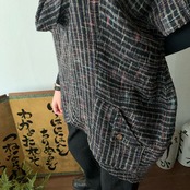 シンプルに見えますが、織り向きを変えながら贅沢に切り替えを多用しているコクーンシルエットのチュニックブラウスです。