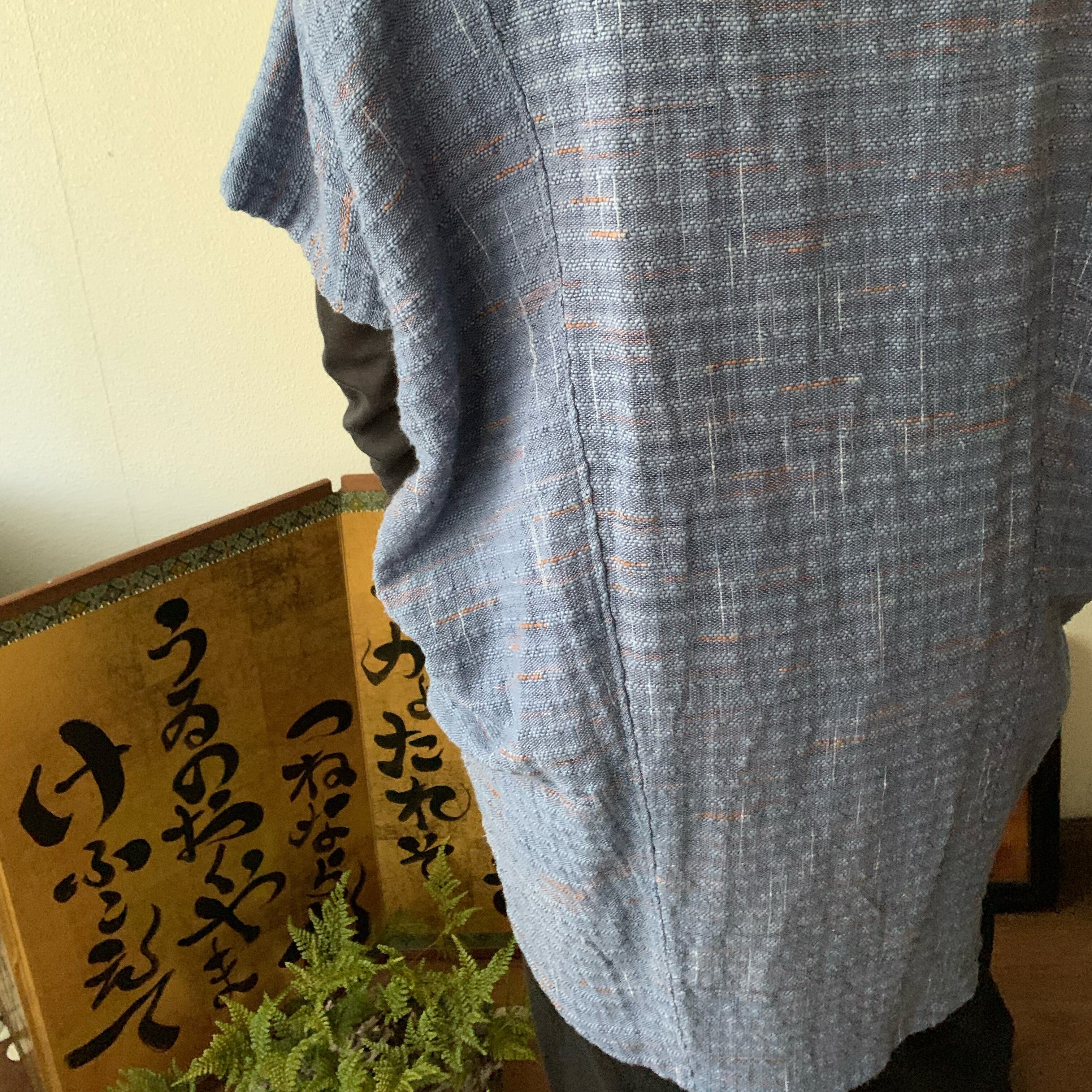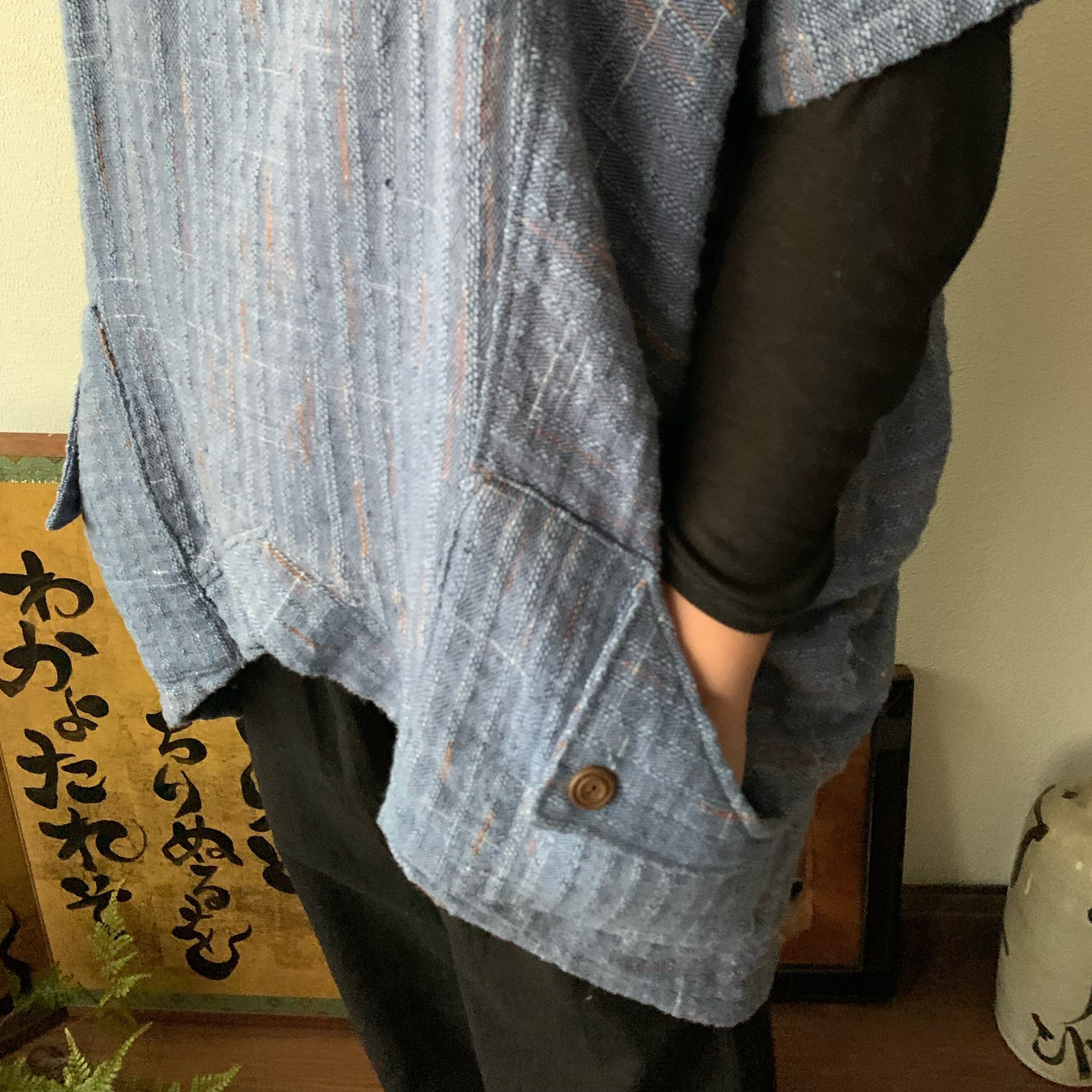 『贅沢に織り向きを切替えたコクーンシルエットの手織綿チュニックブラウス 細身な方からふくよかな方まで』