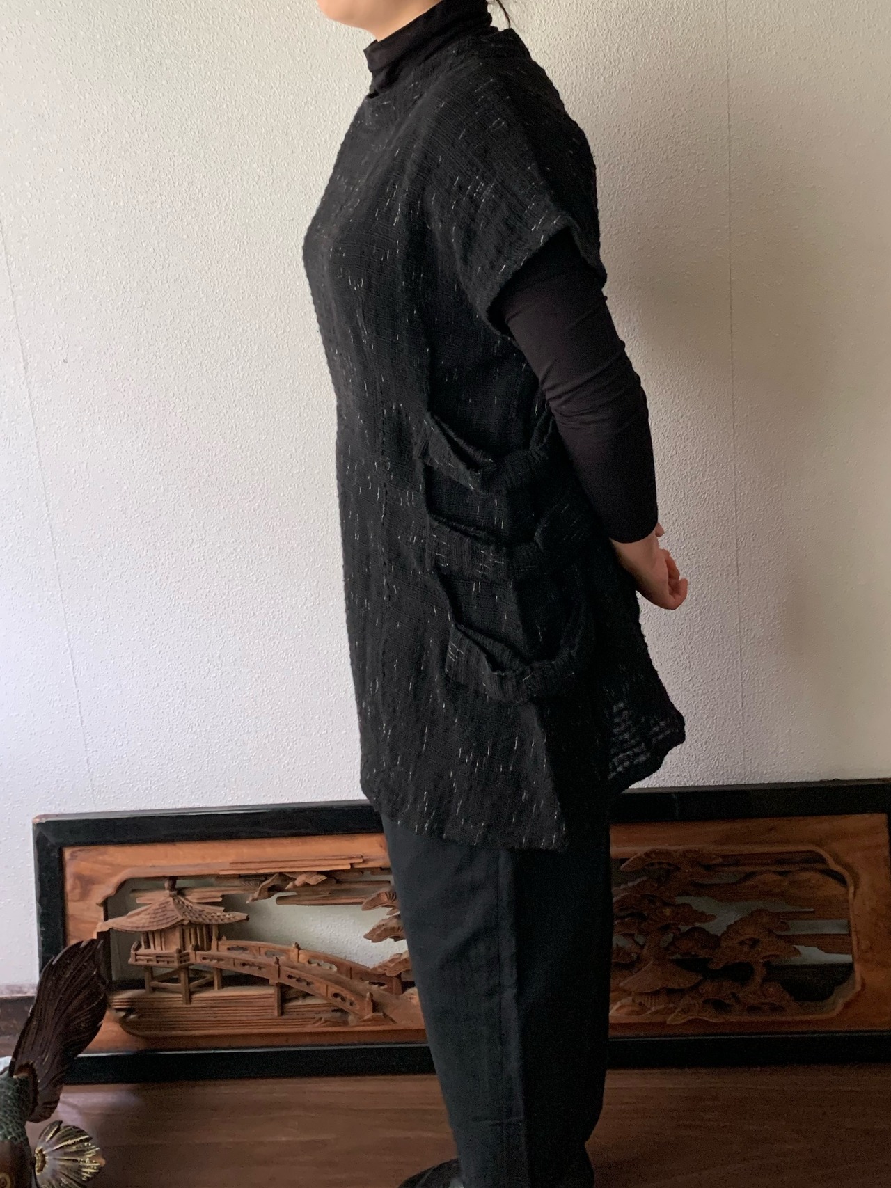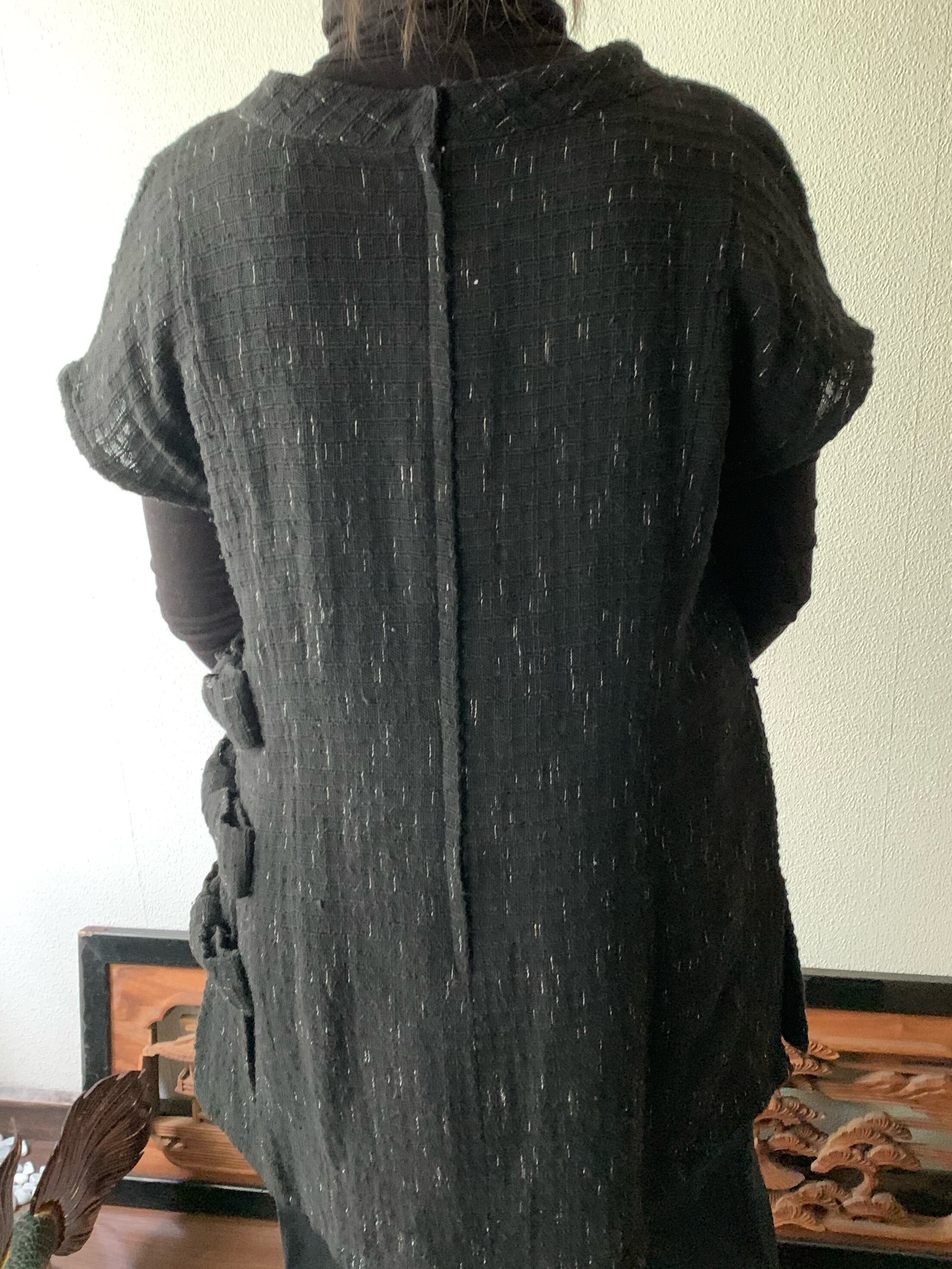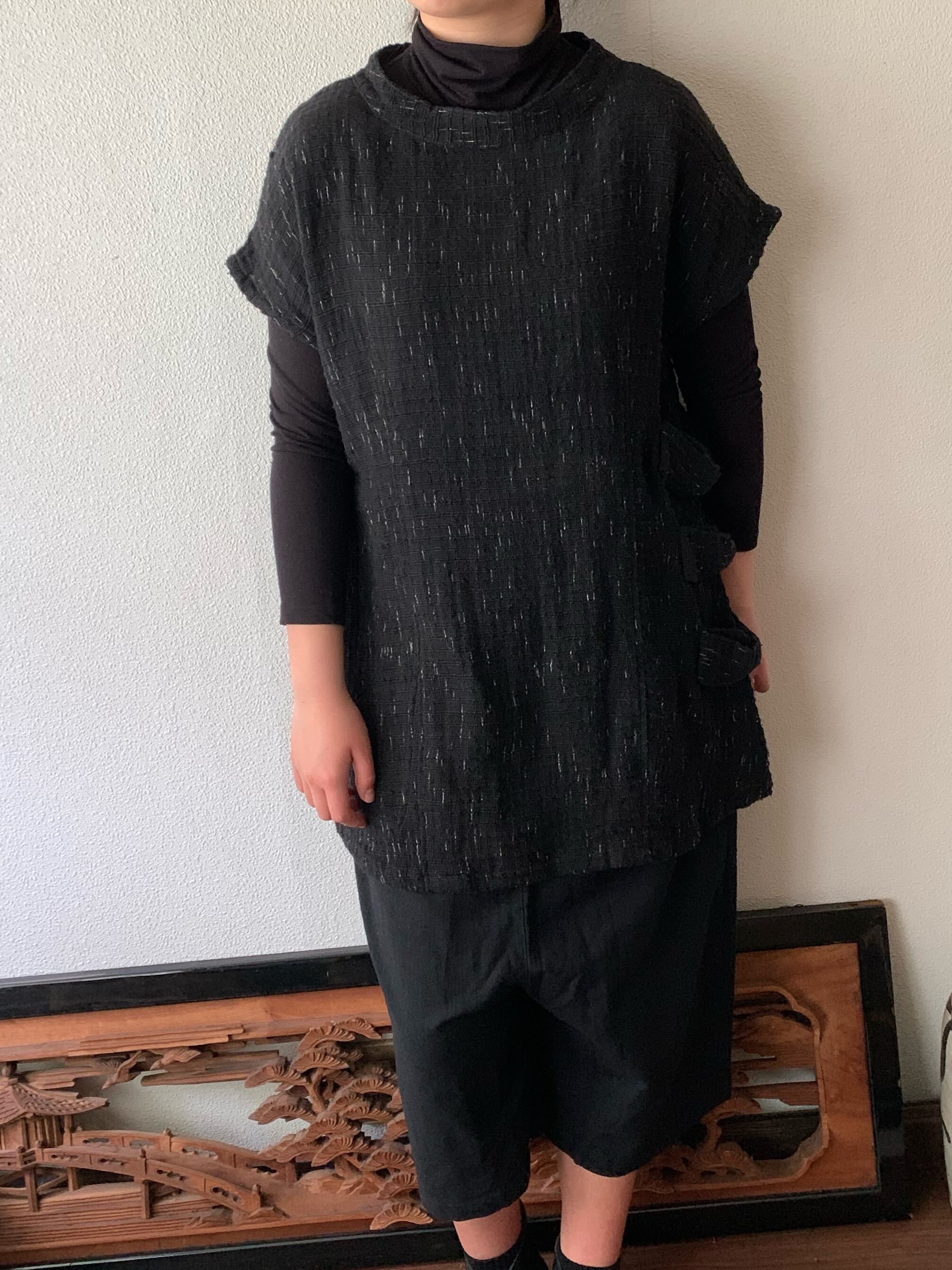 『手織り綿のアシンメトリーチュニック 片サイドリボンで可愛くエレガントに』