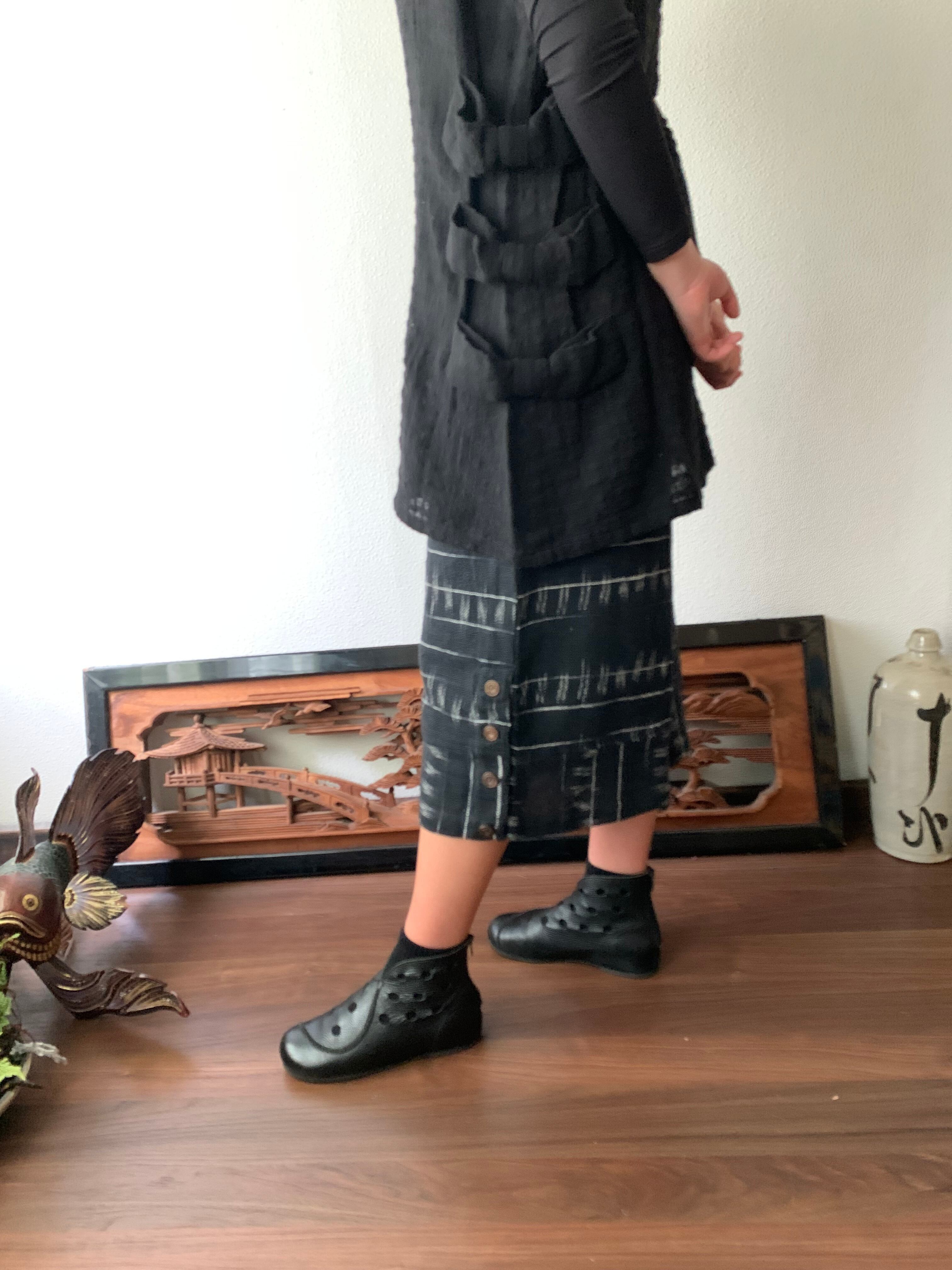 手織り綿なので、夏にサンダルと合わせても良し、秋冬にレギンスの上にはきブーツを合わせてもかっこいいです。