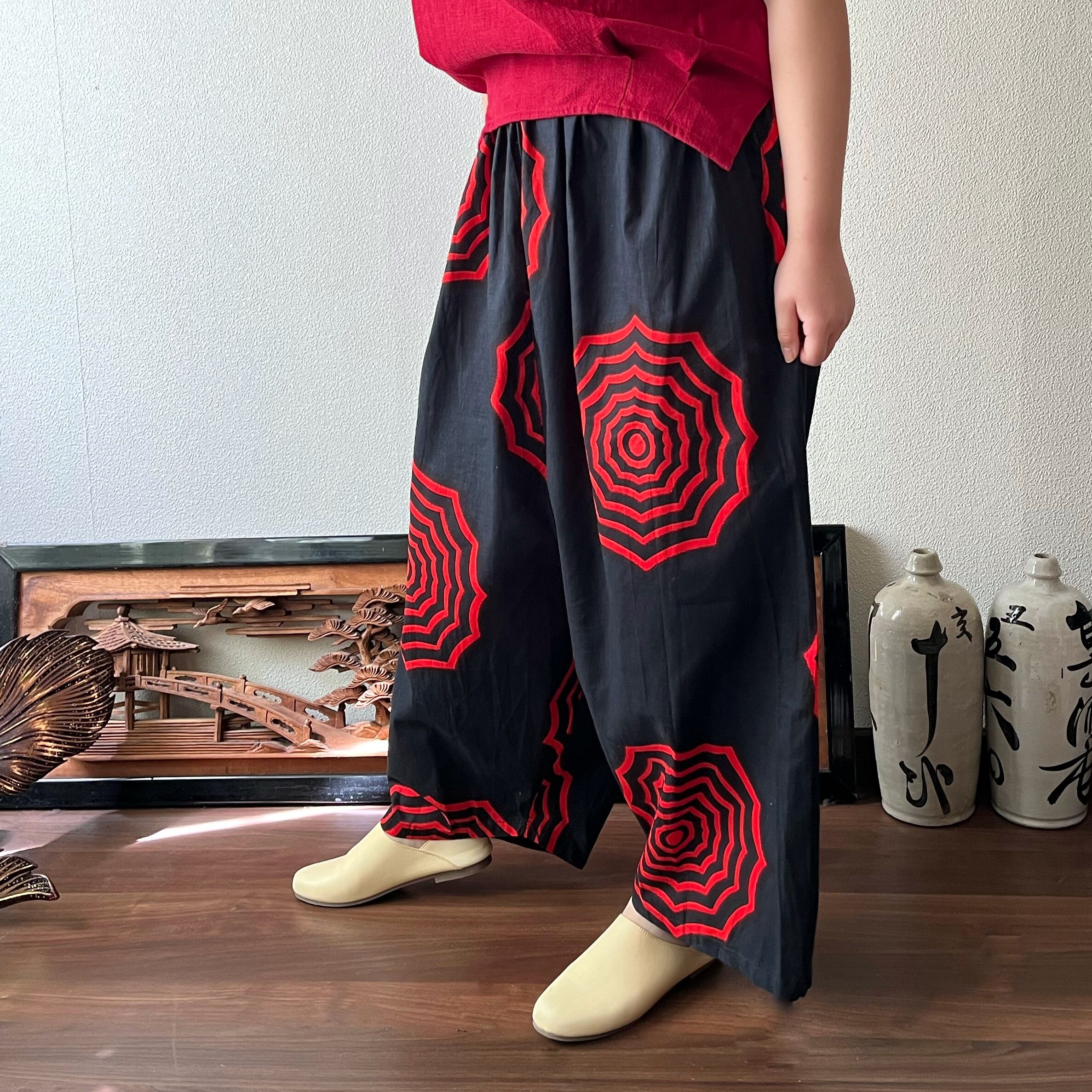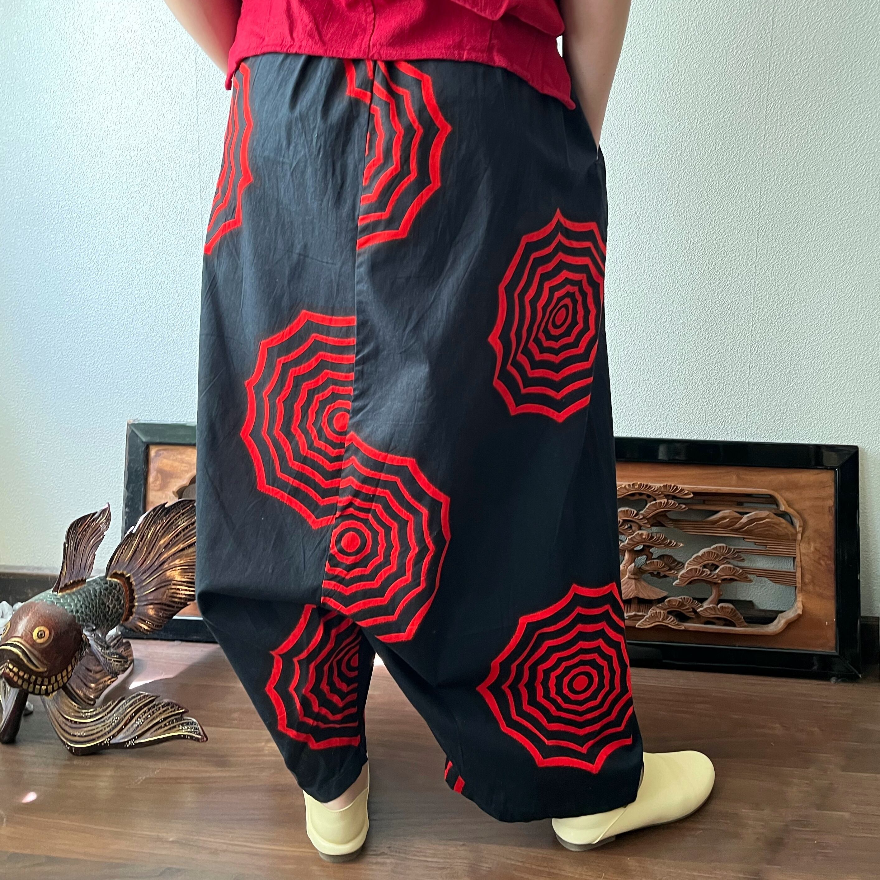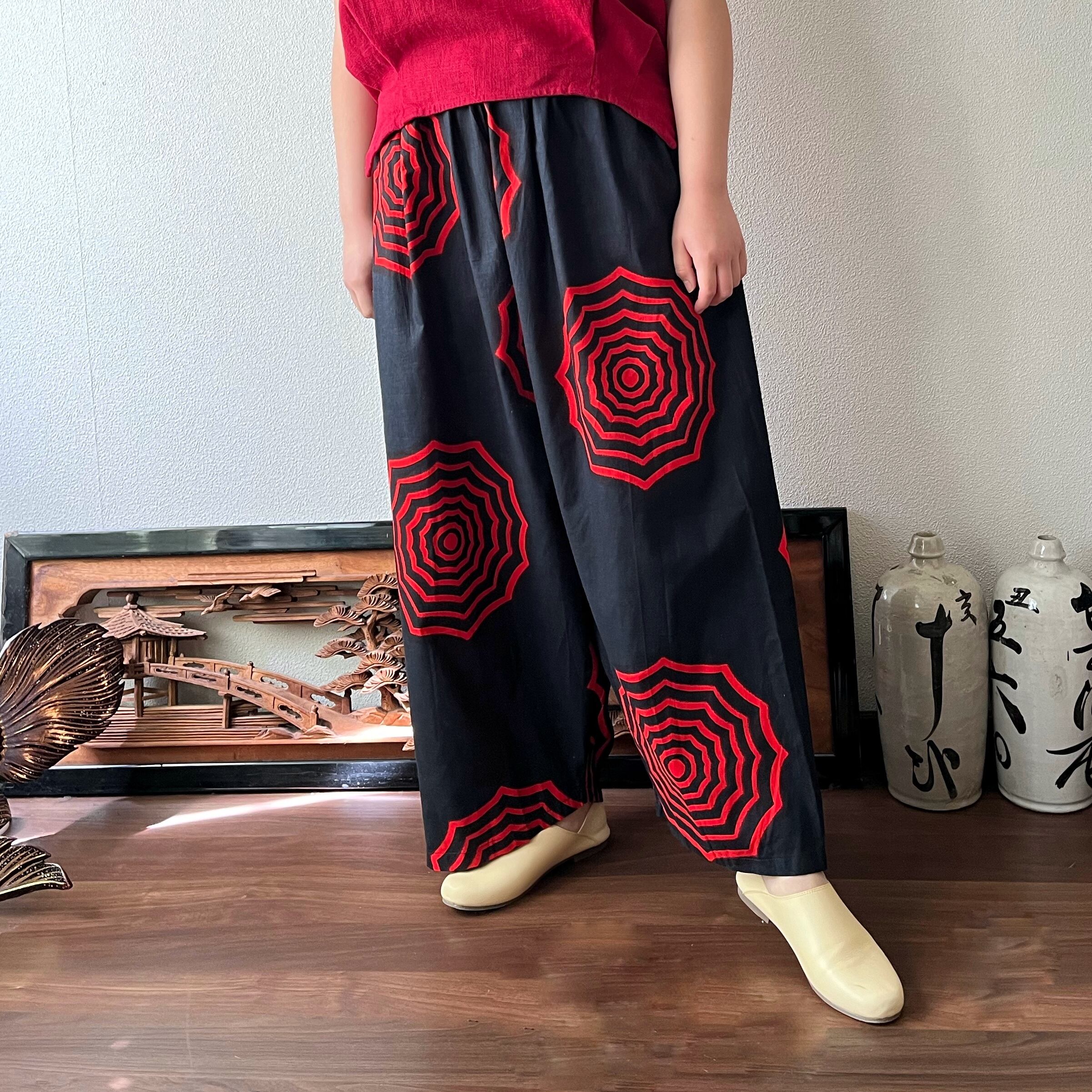 『あくびちゃん?アラジン?アフリカンバティックパンツ 動きがよく出る素材だからシルエットが楽しい』