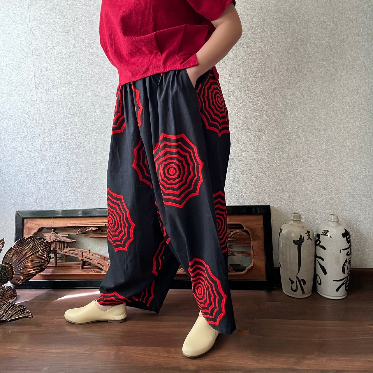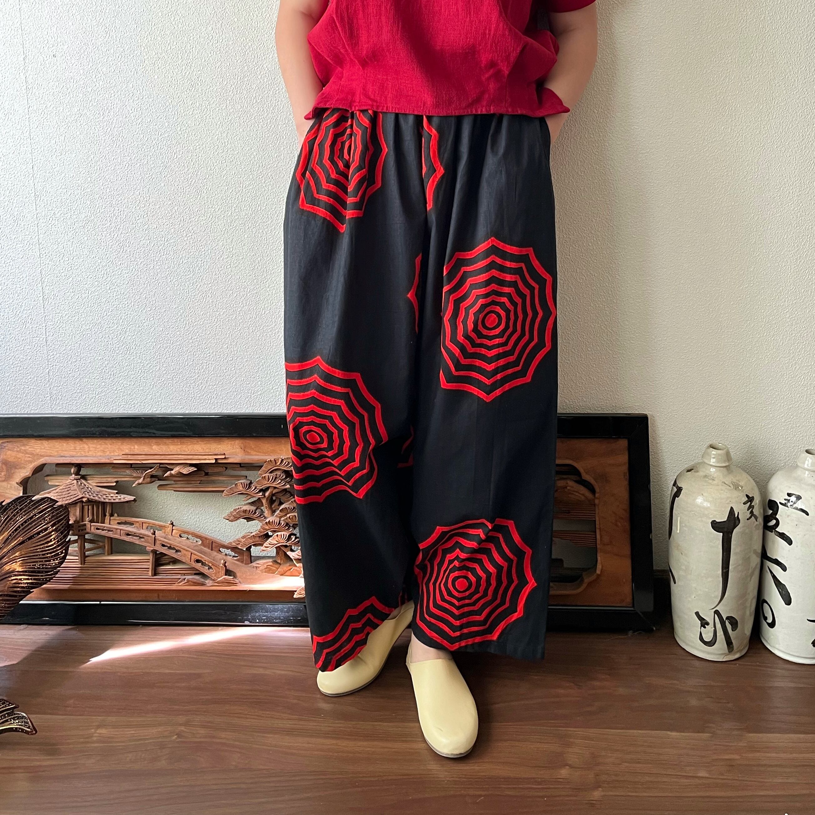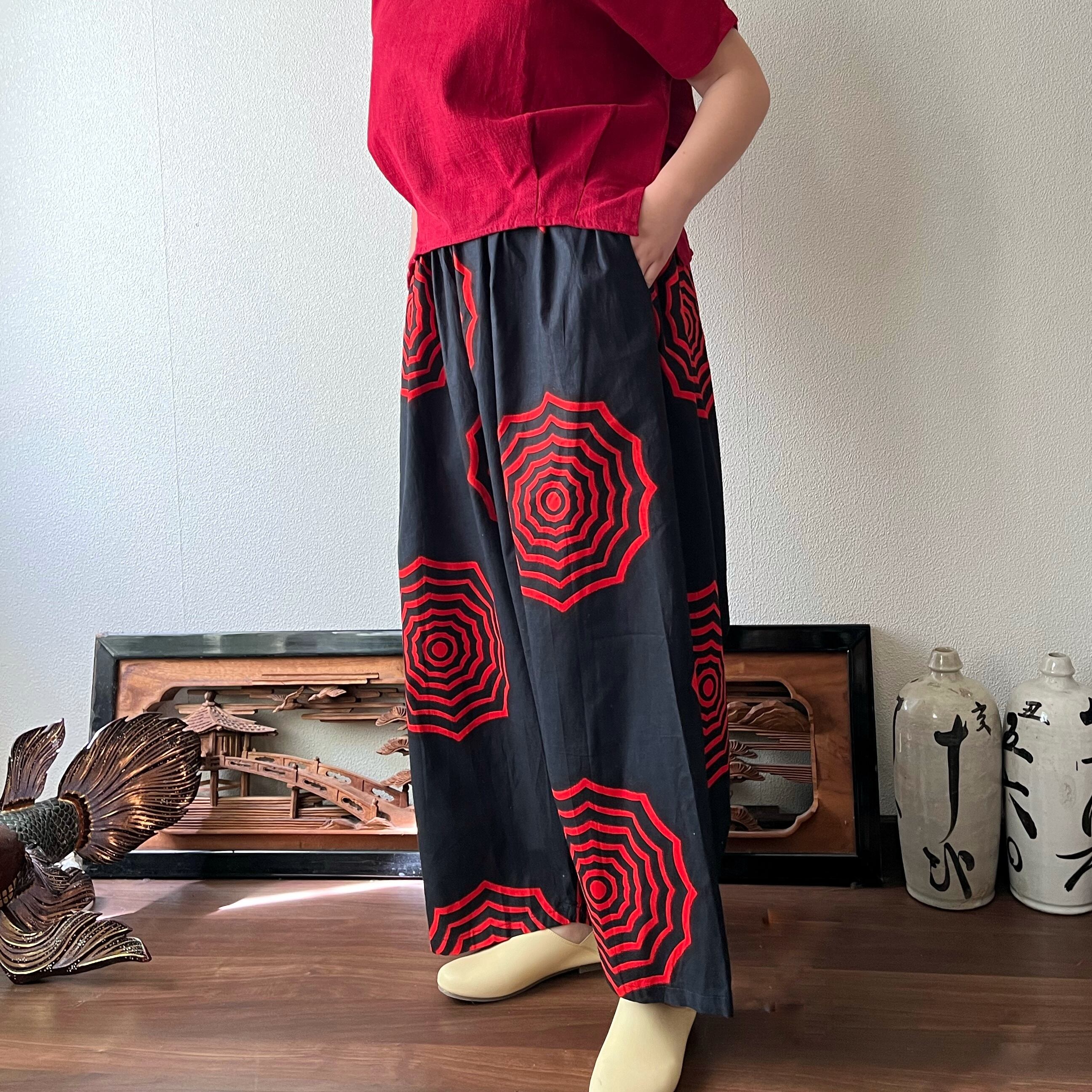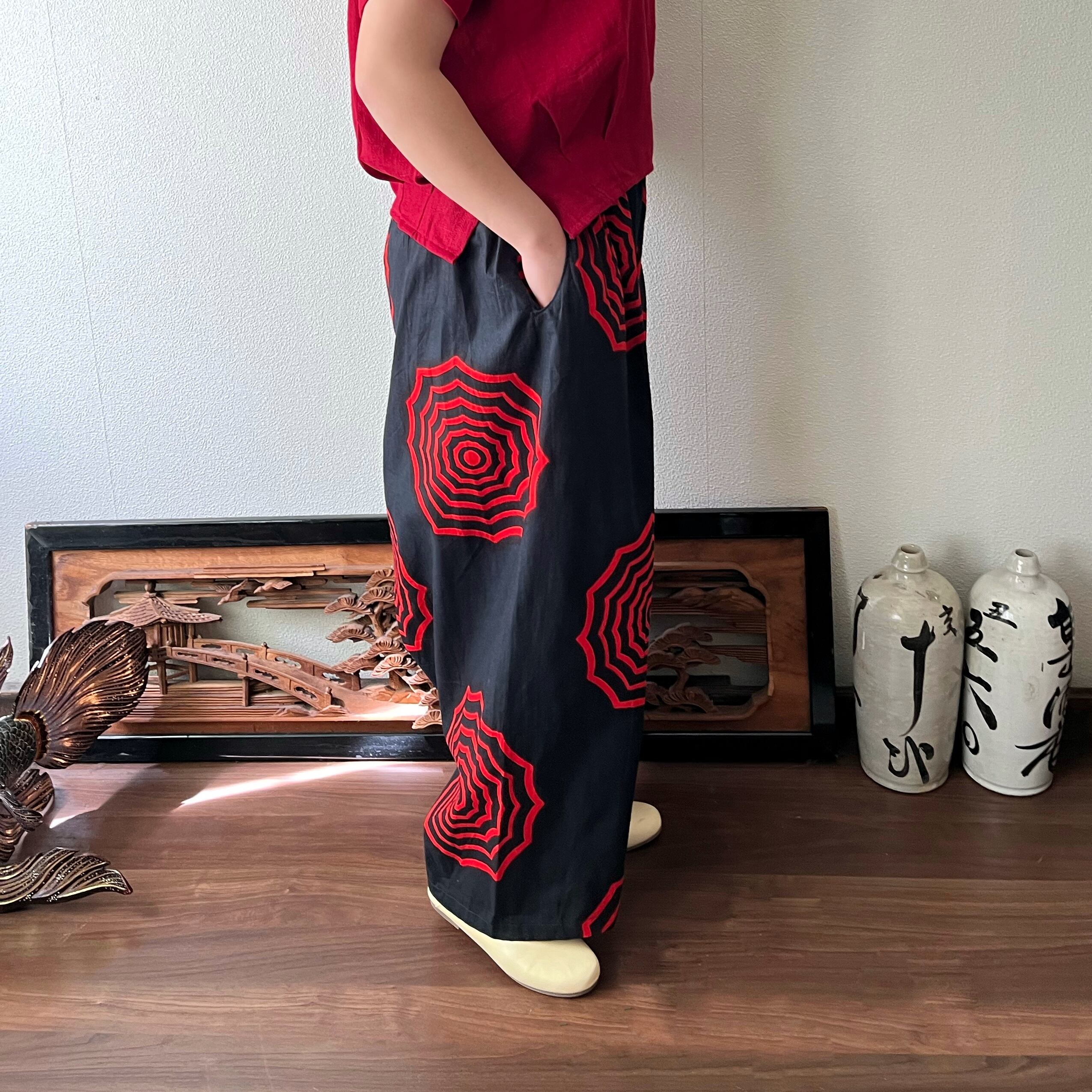 『あくびちゃん?アラジン?アフリカンバティックパンツ 動きがよく出る素材だからシルエットが楽しい』