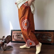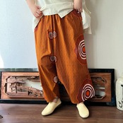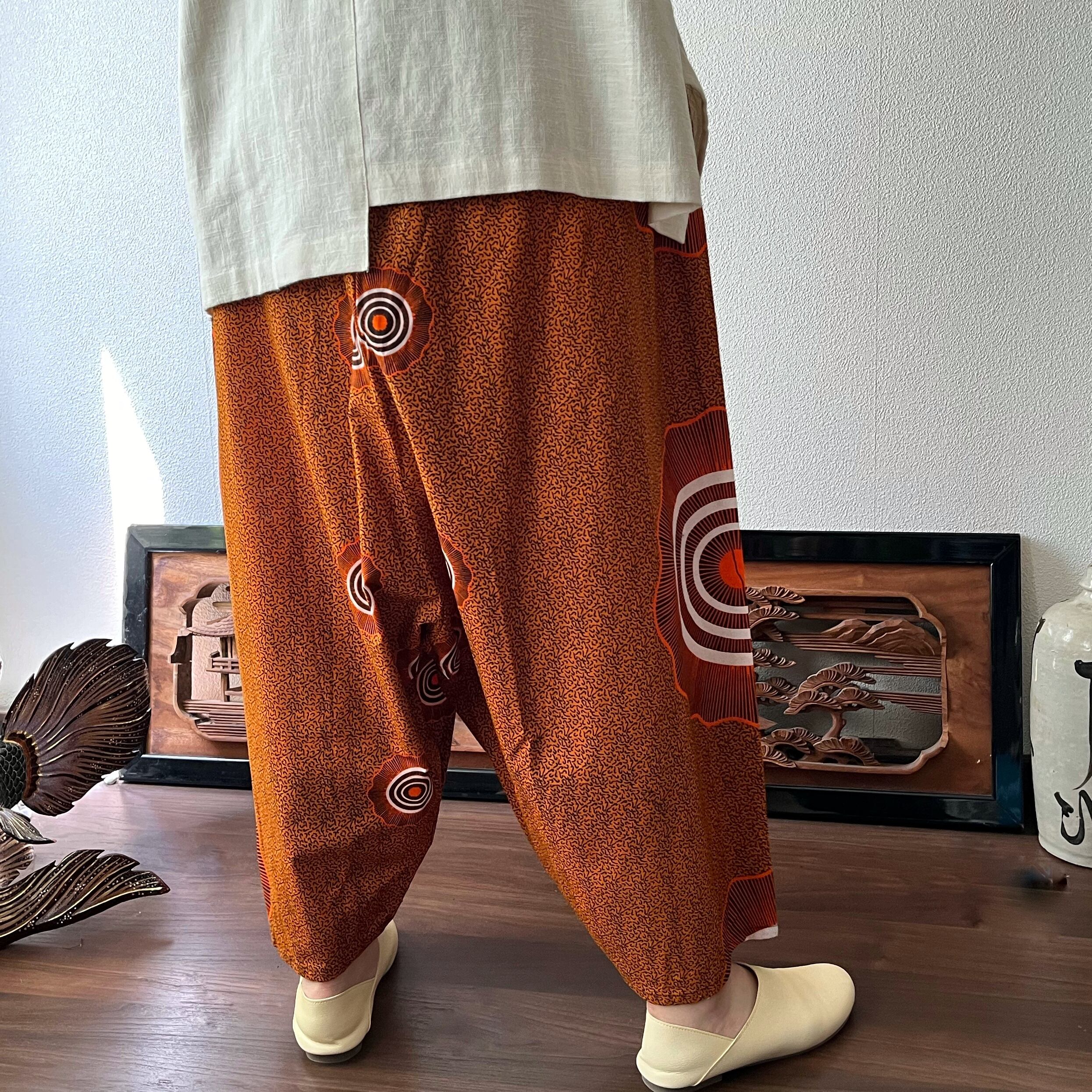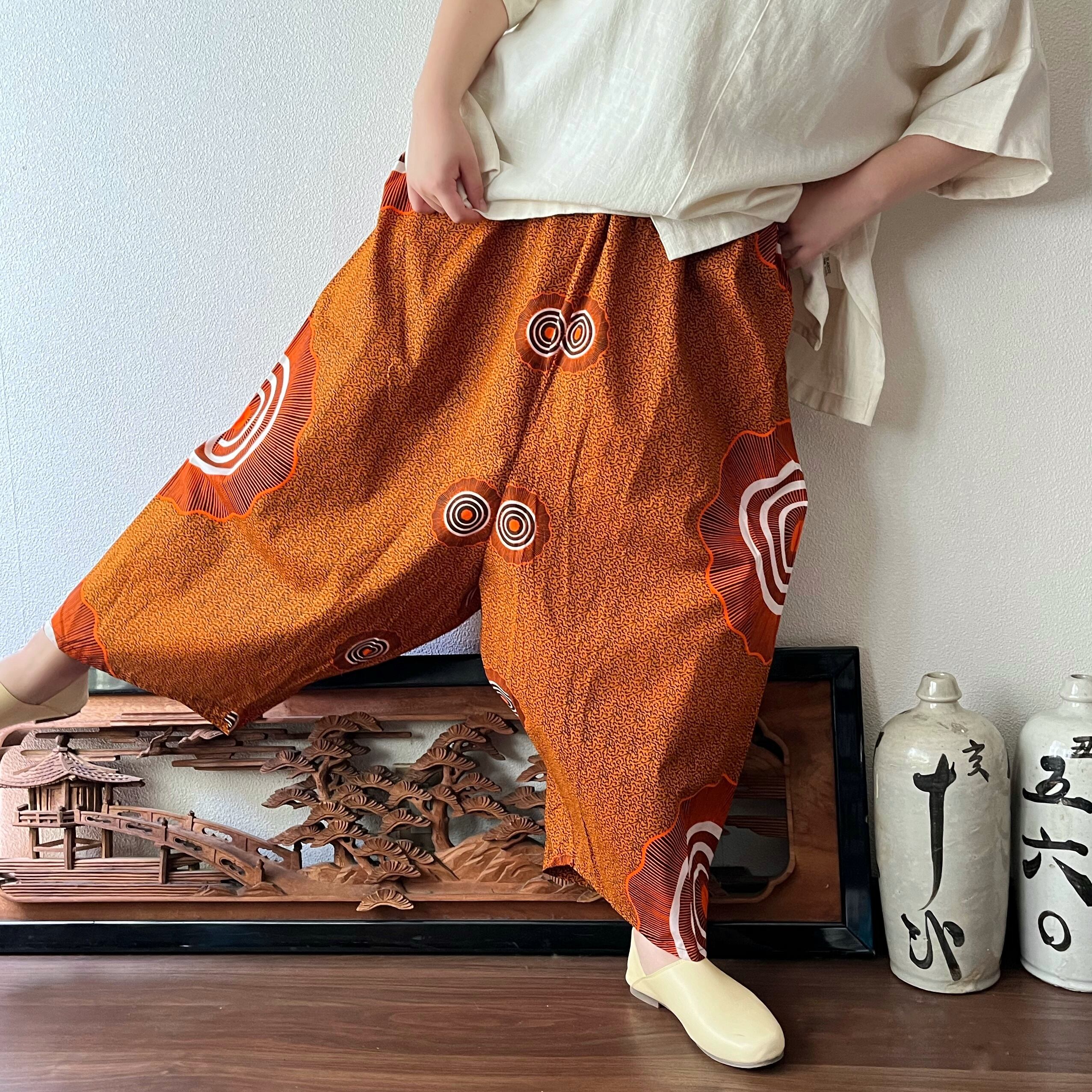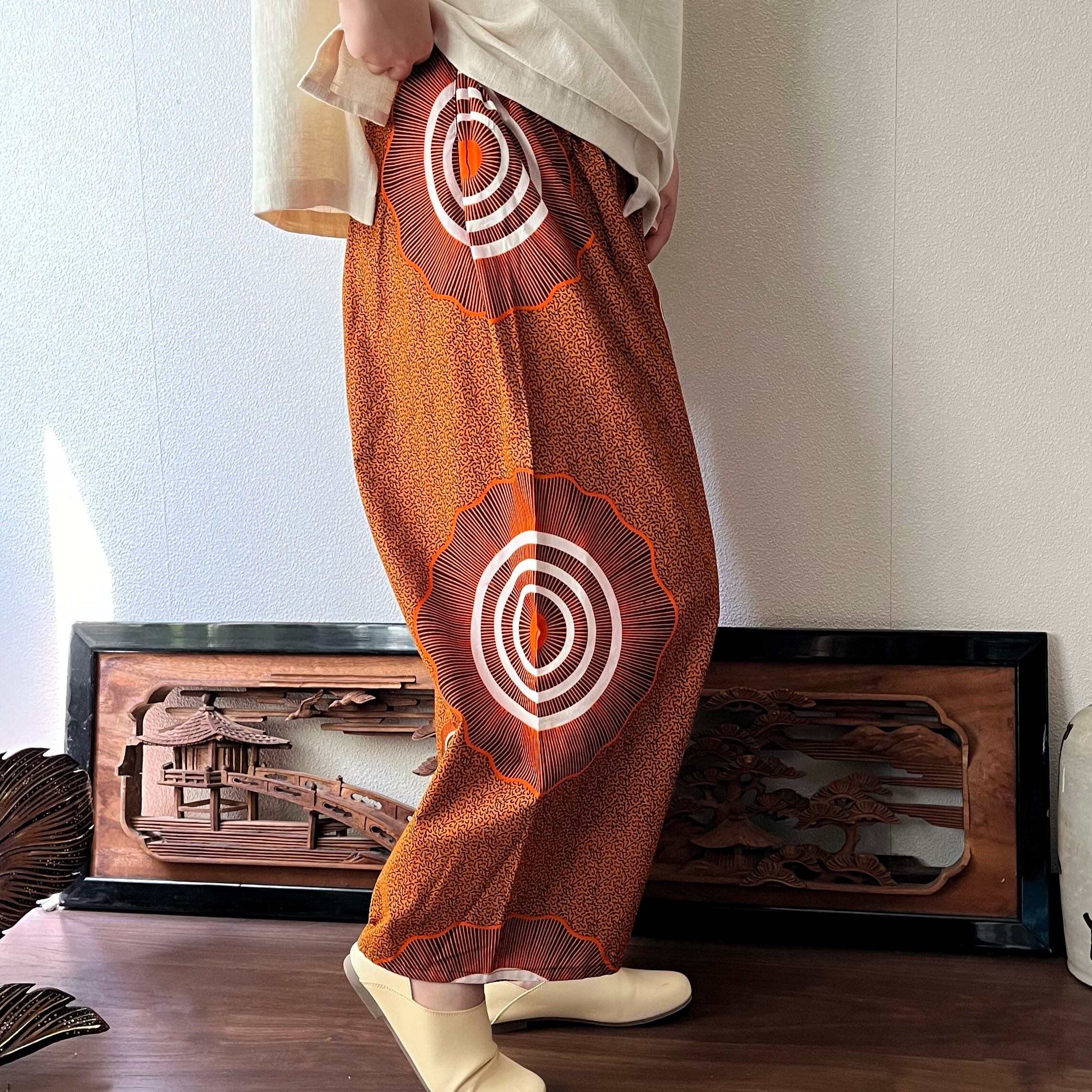 あくびちゃん?アラジン?アフリカンバティックパンツ 動きがよく出る素材だからシルエットが楽しい 波紋柄茶