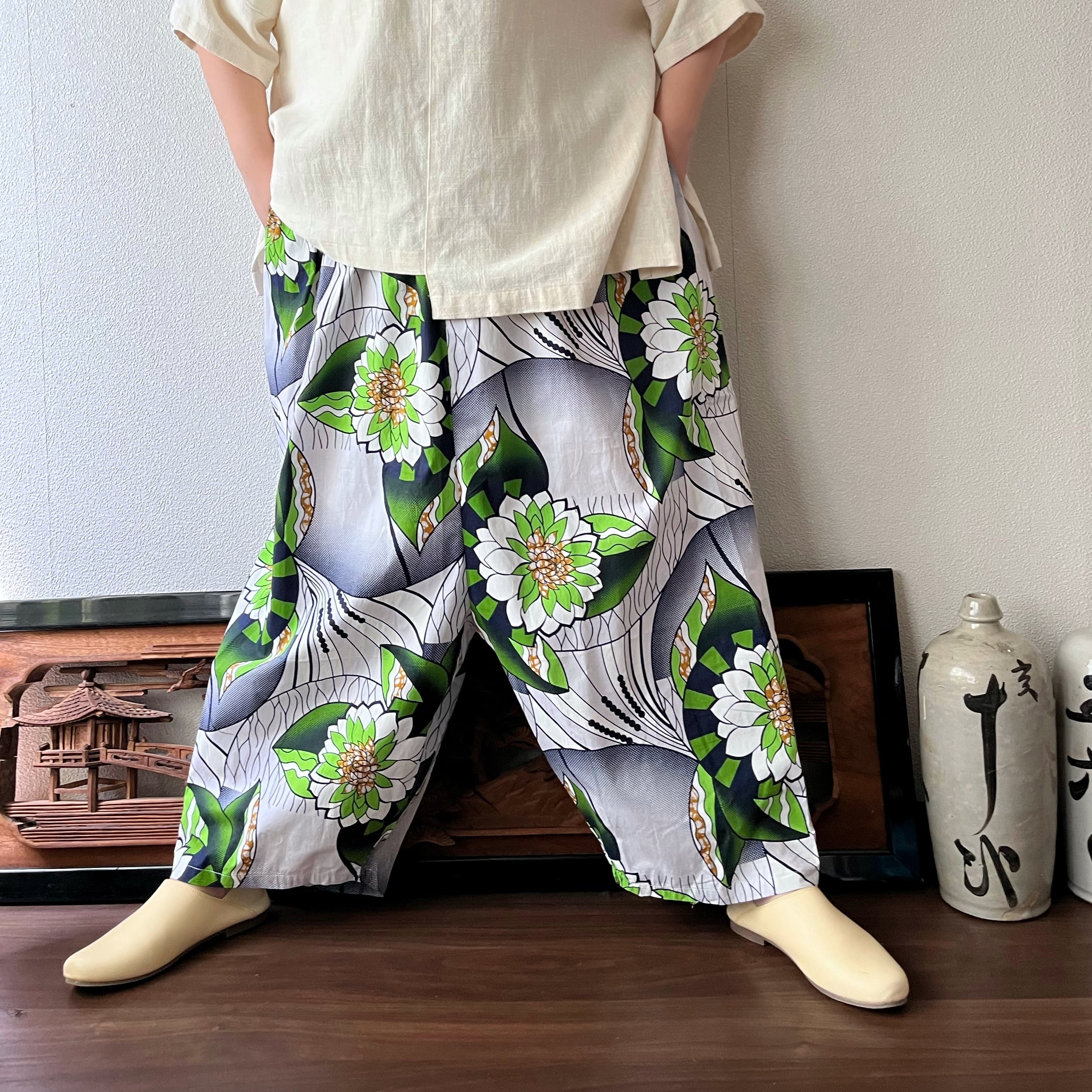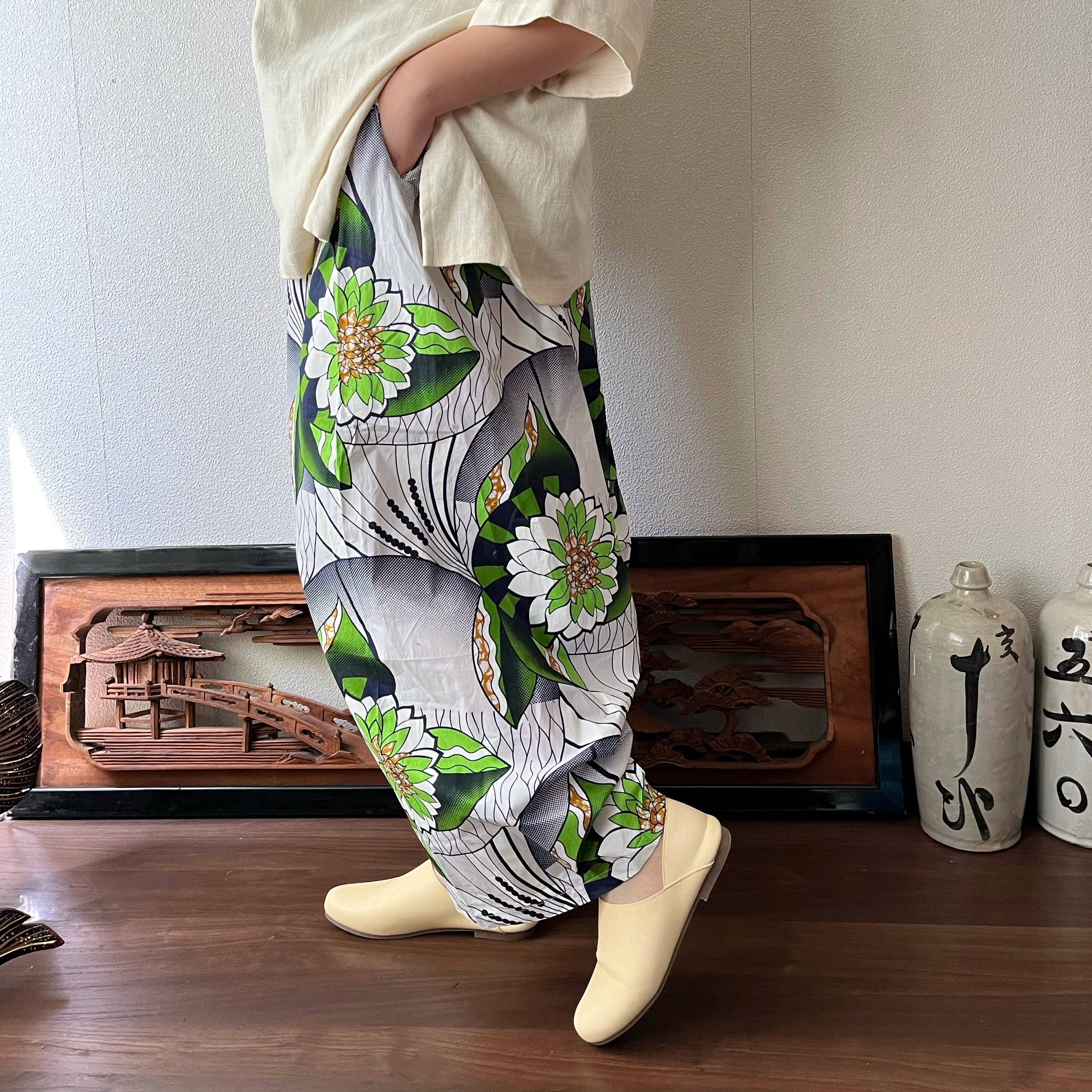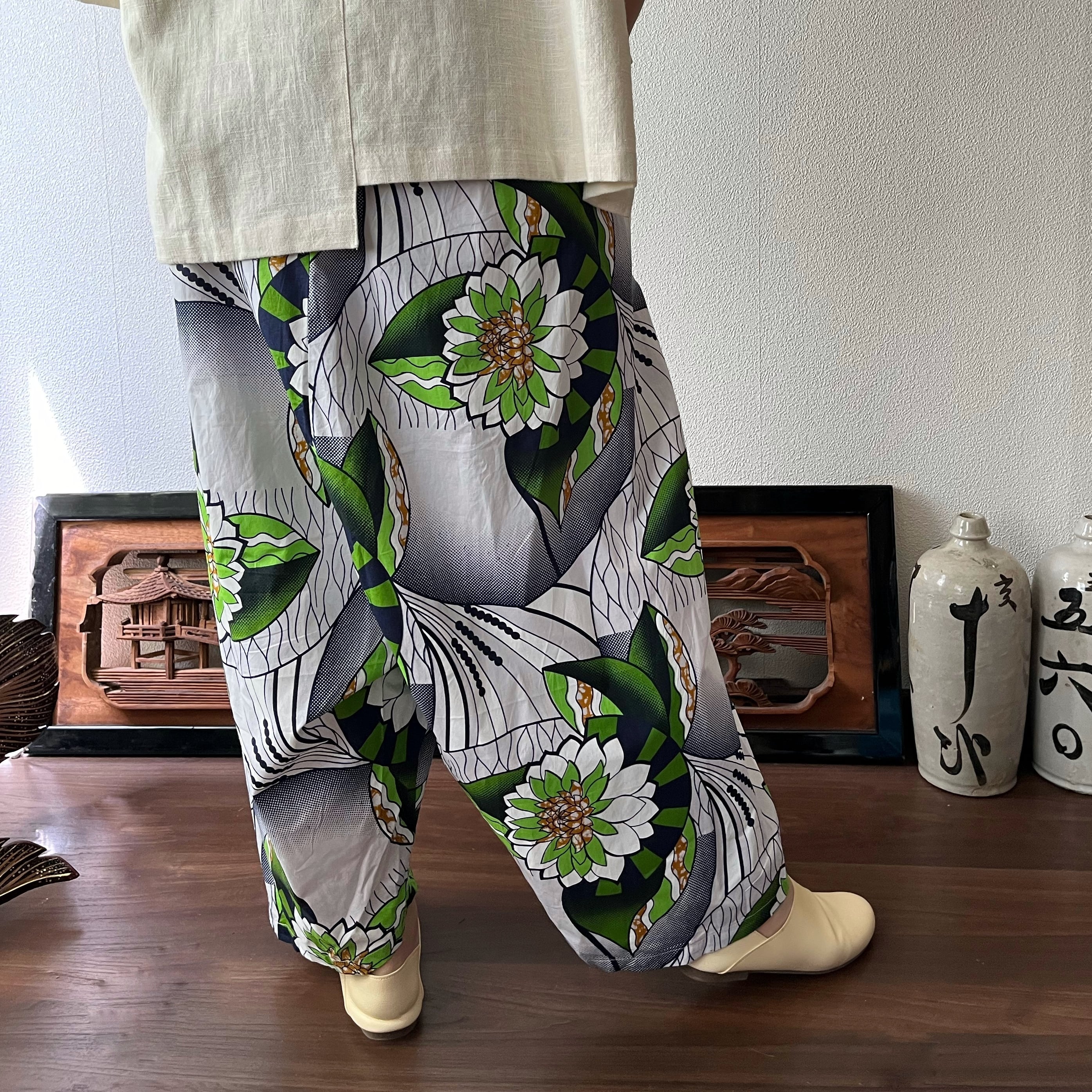 『あくびちゃん?アラジン?アフリカンバティックパンツ 動きがよく出る素材だからシルエットが楽しい』